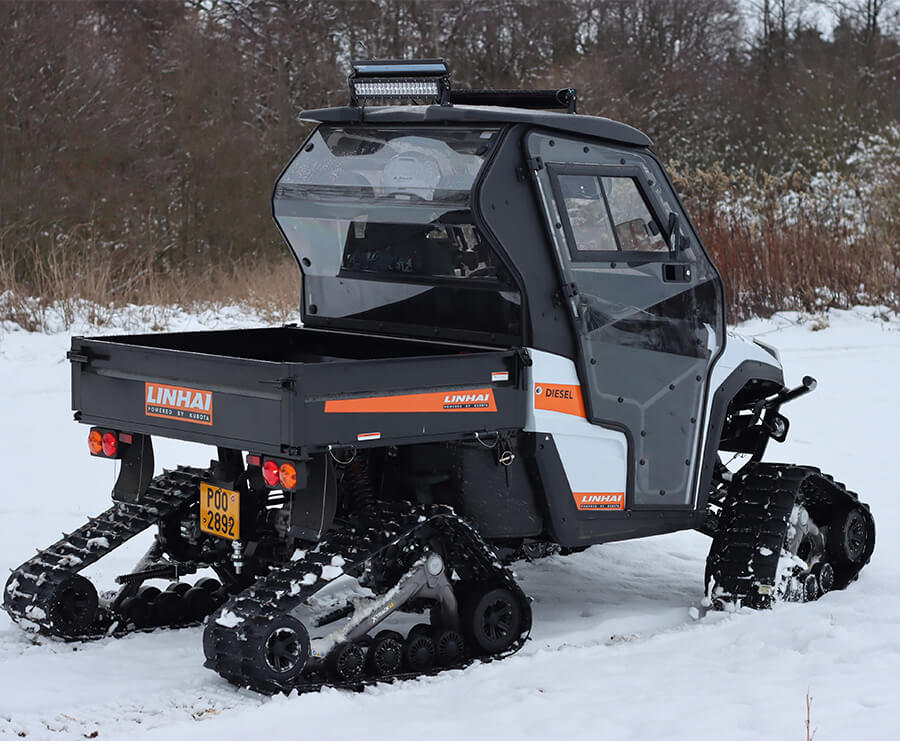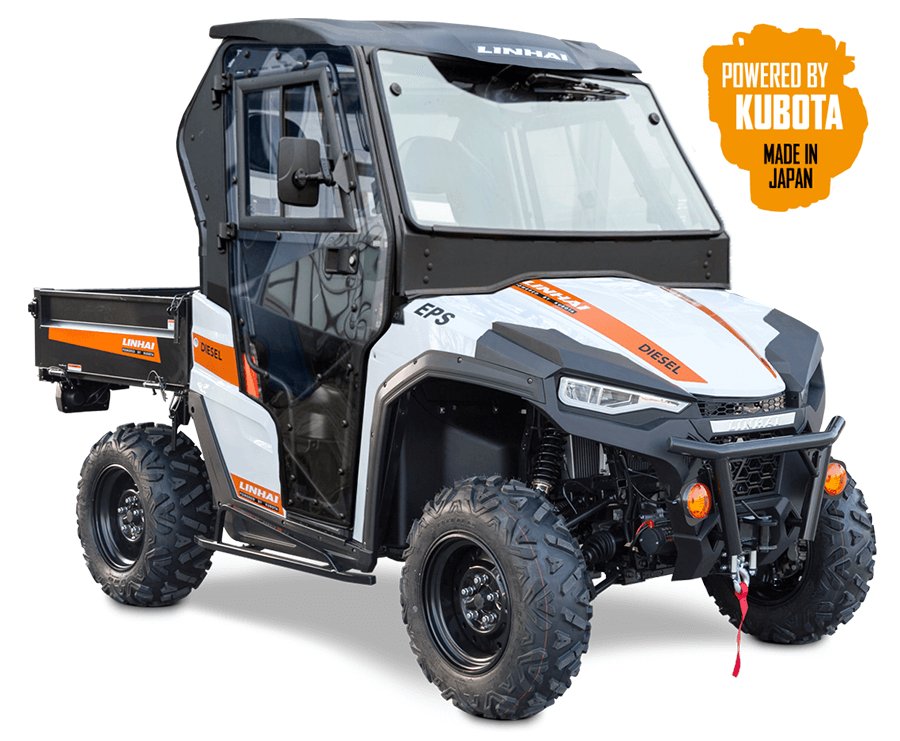 Сердцем Linhai UTV 1100 CAB является надежный дизельный трехцилиндровый двигатель Kubota D1105-E3B объемом 1124 см³. Этот двигатель обеспечивает высокий крутящий момент (до 72 Н-м) и стабильную мощность (24.8 л.с.), необходимую для выполнения самых сложных задач. Автоматическая трансмиссия CVT (произведена CVTech, Канада) с режимами L/H/N/R делает управление простым, а надежная система полного привода 2×4/4×4 с блокировкой переднего и заднего дифференциалов гарантирует максимальную проходимость.