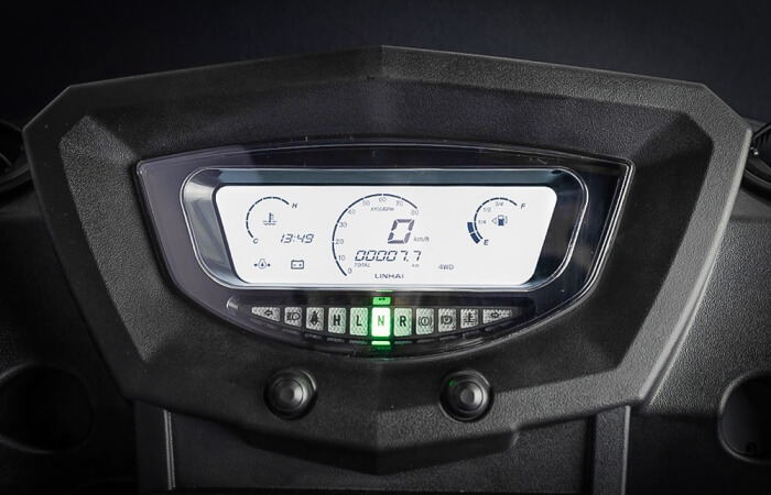 Сердцем Linhai UTV 1100 является легендарный дизельный трехцилиндровый двигатель Kubota D1105-E3B объемом 1124 см³ с жидкостным охлаждением, производимый в Японии. Этот двигатель обеспечивает небольшой расход топлива, высокий крутящий момент (до 72 Н-м) и стабильную мощность (24.8 л.с.), необходимую для выполнения самых сложных задач. Автоматическая трансмиссия CVT (произведена CVTech, Канада) с режимами L/H/N/R делает управление простым, а надежная система полного привода 2×4/4×4 с блокировкой переднего и заднего дифференциалов гарантирует максимальную проходимость.