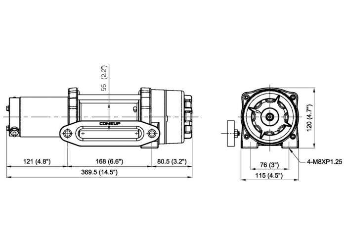 Электрическая лебедка с тяговым усилием 4000 фунтов (1814 кг) (по горизонтали).
