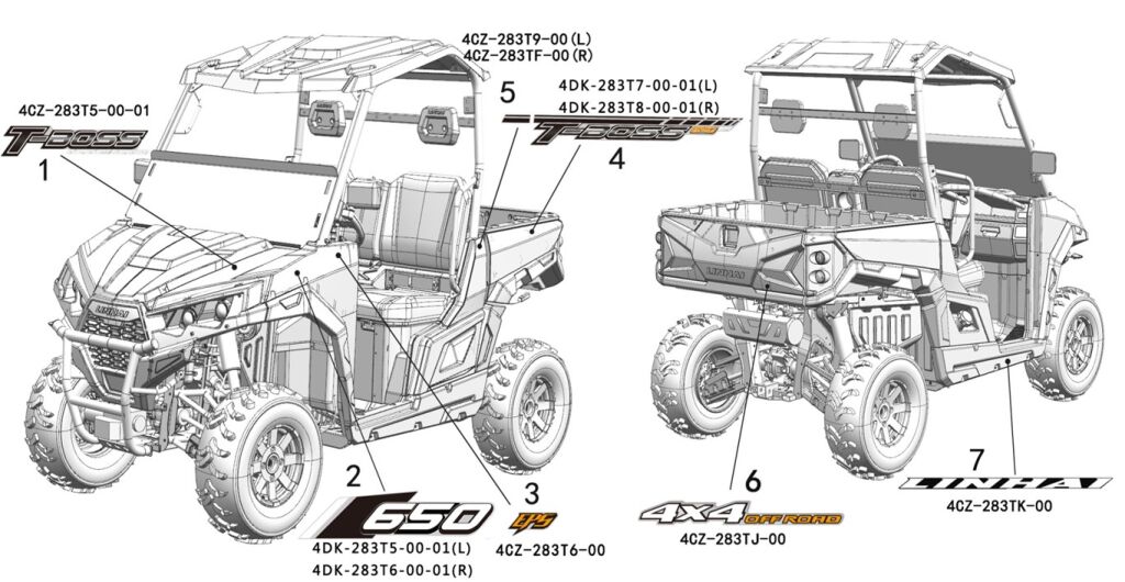Декоративные наклейки (для красных, синих, песчаных, зеленых, серых пластиковых деталей) | Linhai_5_527_t-boss 650 доставим по Украине в течении 2-3-х дней после подтверждения заказа менеджером. Заказ отправляется службами доставки в тот же день, если заказ сделан до 14:00 и товар готов к отправке. Доставка осуществляется курьером магазина или службой доставки "Нова Пошта" и "Meest-Express". Стоимость доставки нашей машиной по Украине 20 грн/км от магазина в обе стороны (100 км=2000 грн). В Киеве, Виннице доставка машиной магазина по цене 300 грн. Стоимость доставки "Нова Пошта" и "Meest-Express" по их тарифам. Так же на многих товарах есть Бесплатная доставка - ищите соответствующий стикер на товаре!