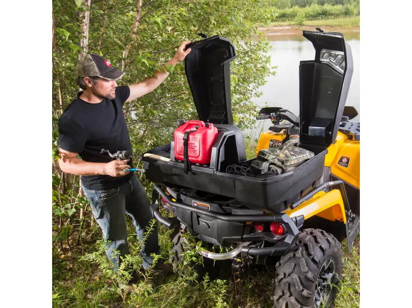 В нем достаточно места для хранения двух мотокроссовских шлемов, множества инструментов и даже запасного канистра с бензином. Внутреннее пространство бокса можно разделить по своему усмотрению. С левой стороны бокса находится отсек для хранения. Дверца обеспечивает прямой доступ к багажнику, даже когда вы сидите на квадроцикле.