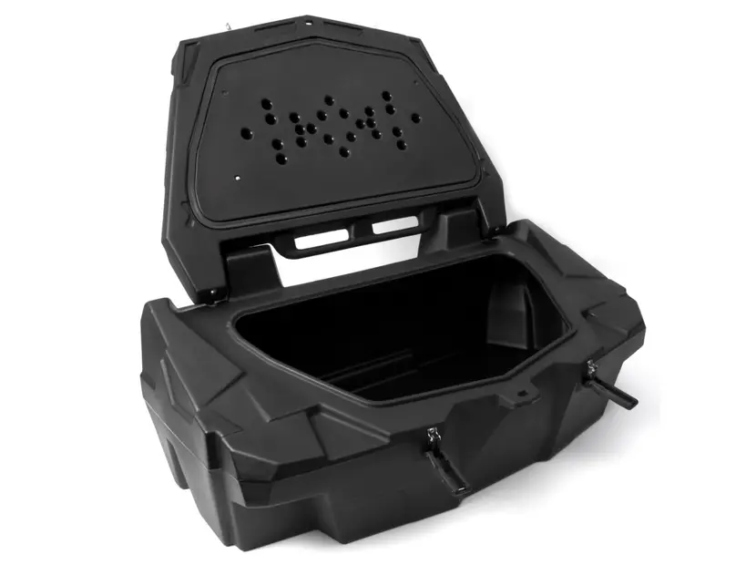 Превосходный задний бокс с огромным внутренним пространством, который вмещает весь груз и точно подходит к кузову вашего UTV. С помощью прилагаемого монтажного материала его можно использовать и на многих моделях больших квадроциклов.