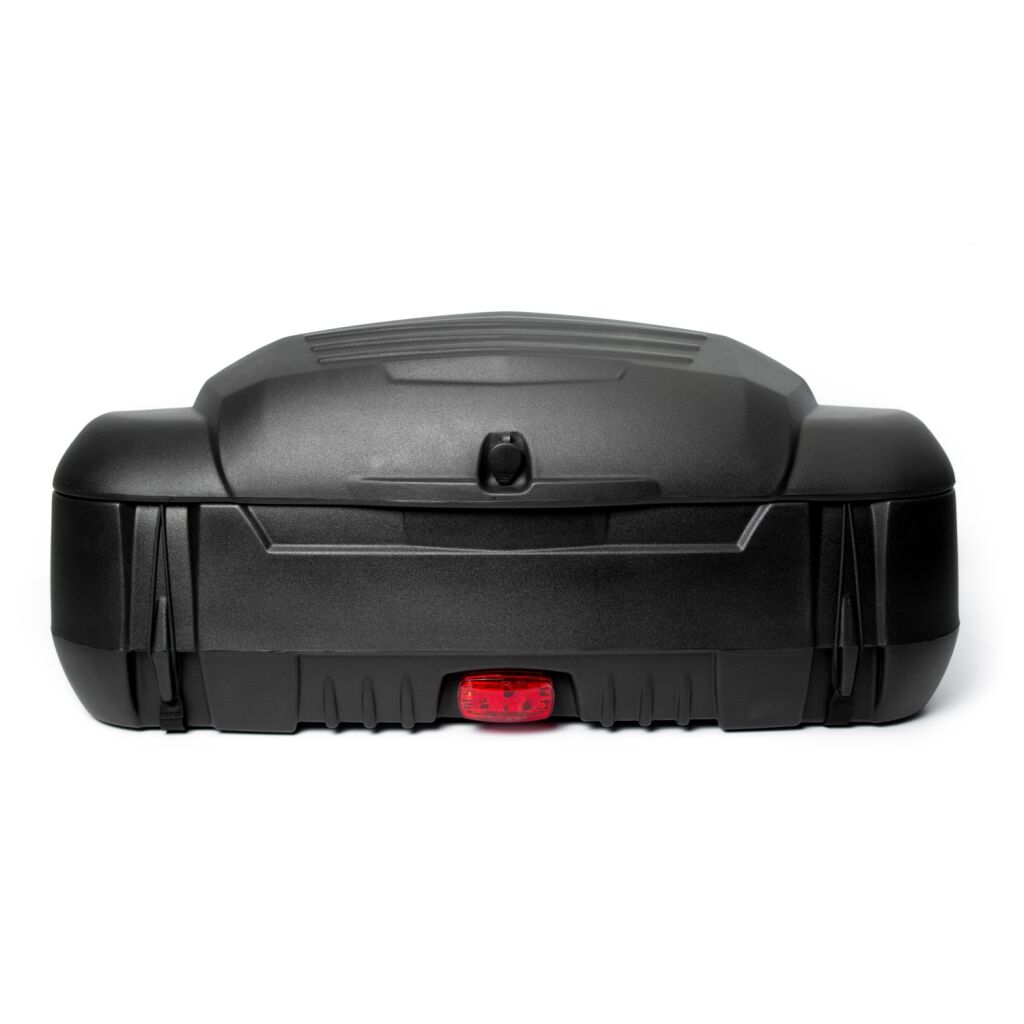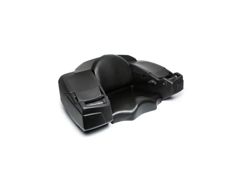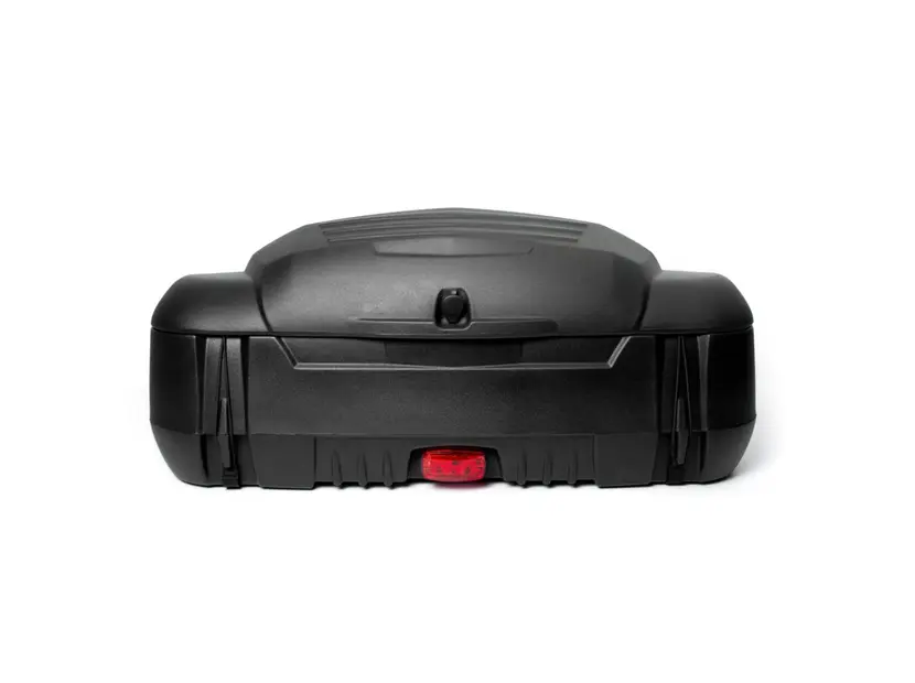Большой роскошный пластиковый бокс с запираемым отсеком для хранения, спинкой, подогревом ручек пассажира и задним стоп-сигналом из светодиодов. Лучший продукт в своей категории.