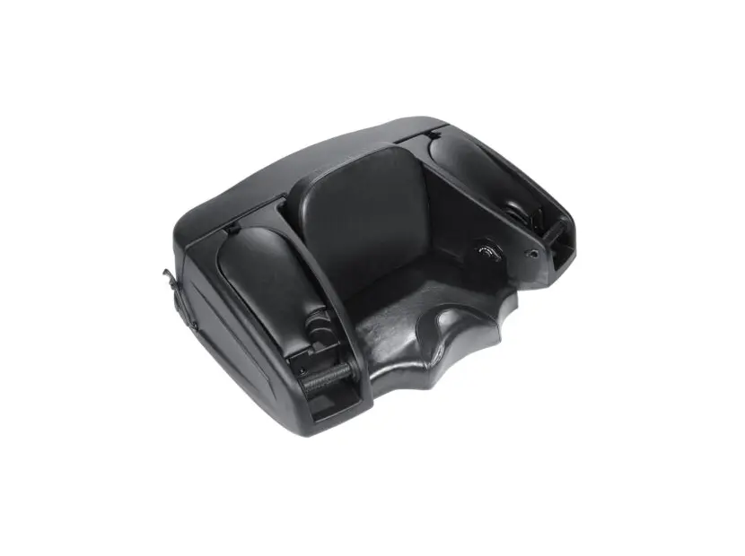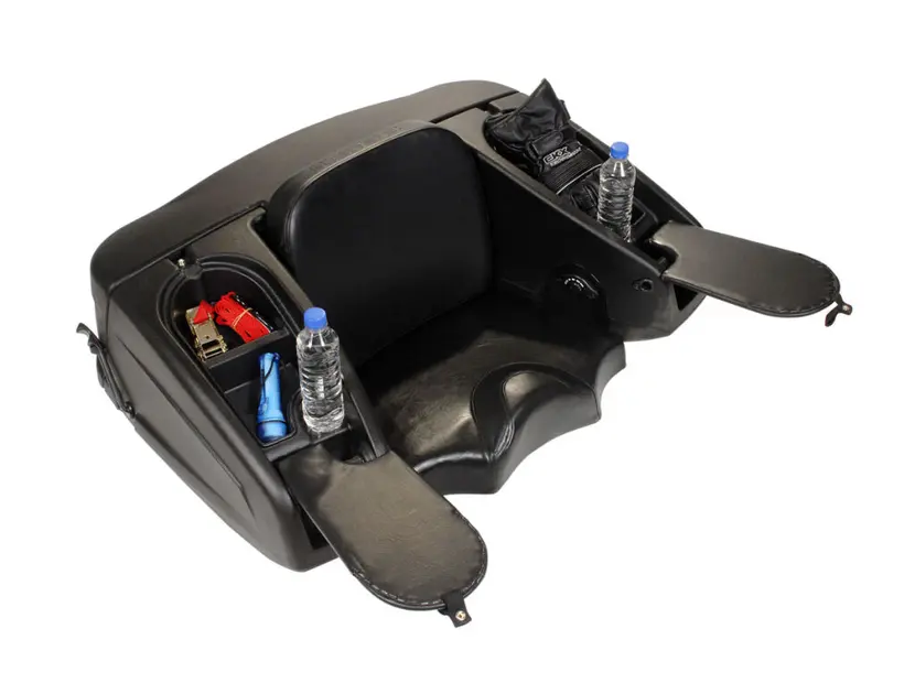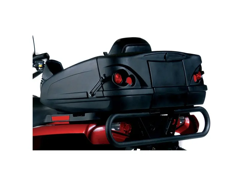 Большой роскошный пластиковый бокс с запираемым отсеком для хранения, спинкой, подогревом ручек пассажира и задними стоп-сигналами из светодиодов. Лучший продукт в своей категории.