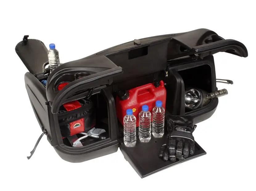 - Просторное внутреннее пространство с достаточным местом для хранения двух шлемов