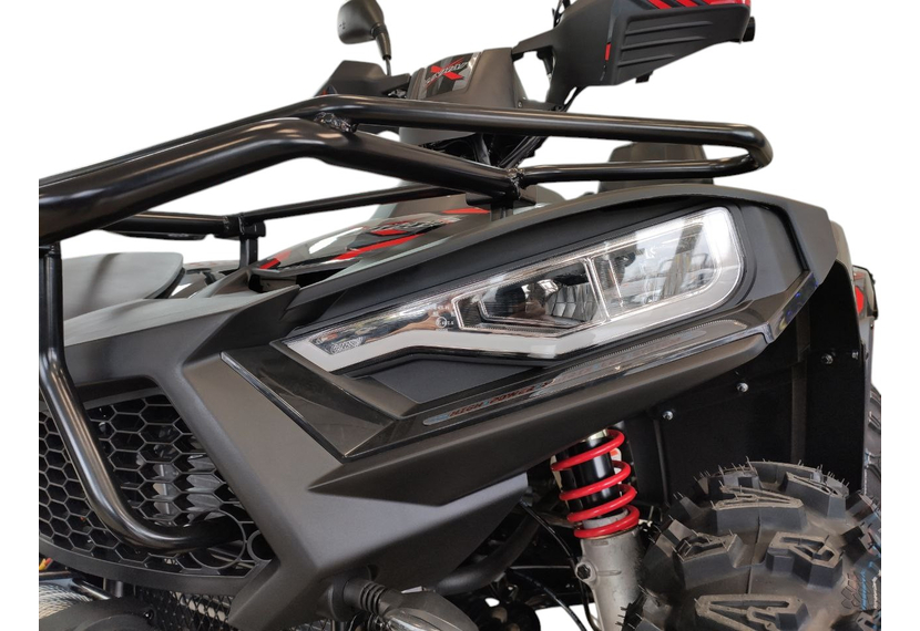 Квадроцикл имеет эргономичный дизайн, обеспечивающий удобную посадку и легкое управление. Простое и понятное расположение элементов управления, удобное сиденье и информативная цифровая панель приборов с LED-дисплеем делают поездку приятной и комфортной.