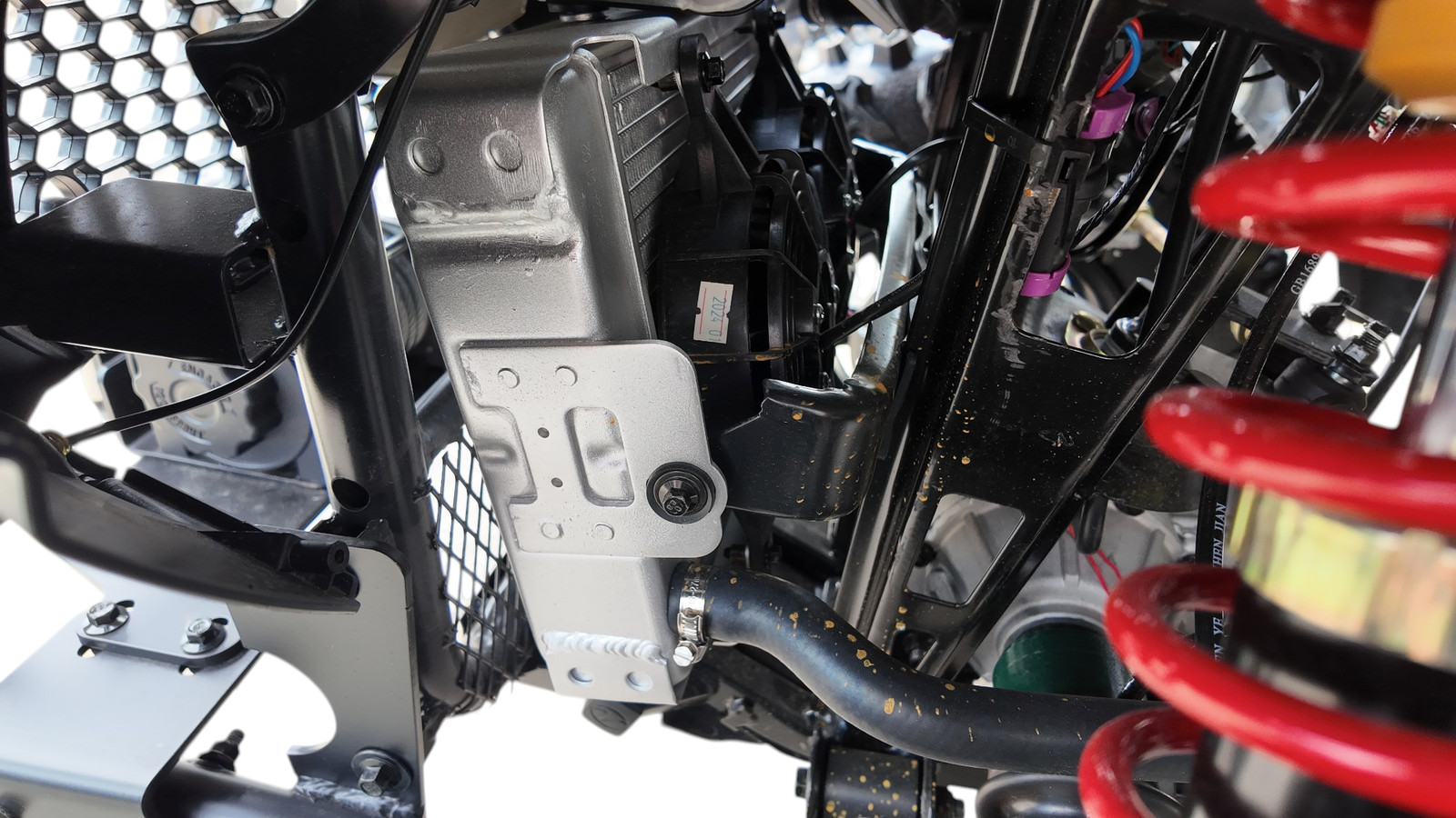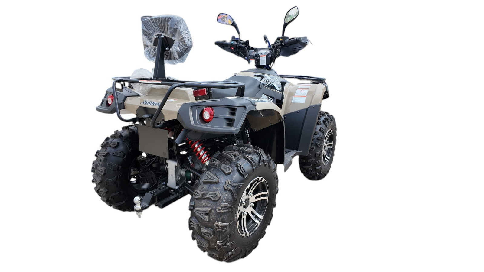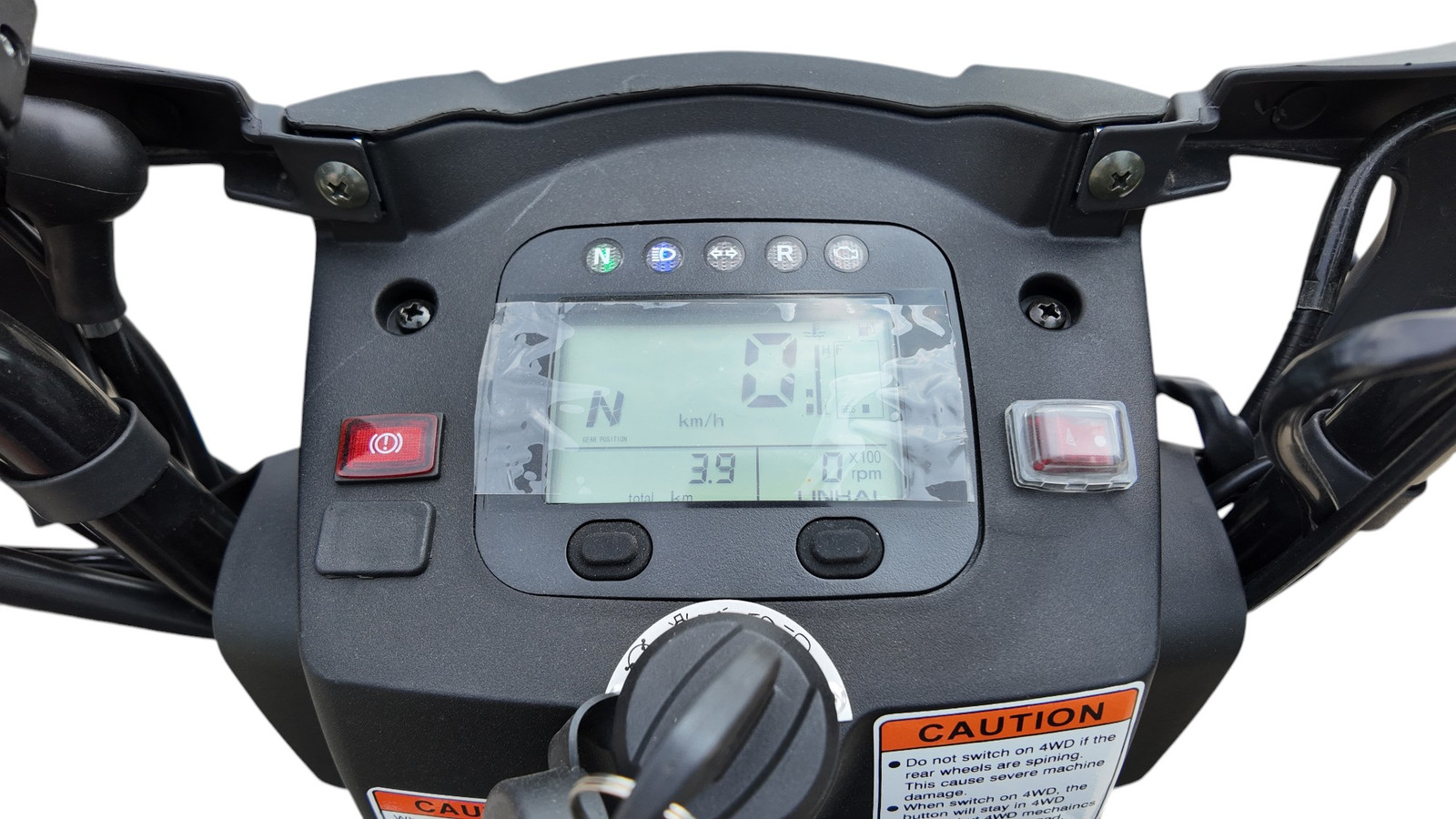 Квадроцикл имеет эргономичный дизайн, обеспечивающий удобную посадку и легкое управление. Простое и понятное расположение элементов управления, удобное сиденье и информативная цифровая панель приборов с LED-дисплеем делают поездку приятной и комфортной.