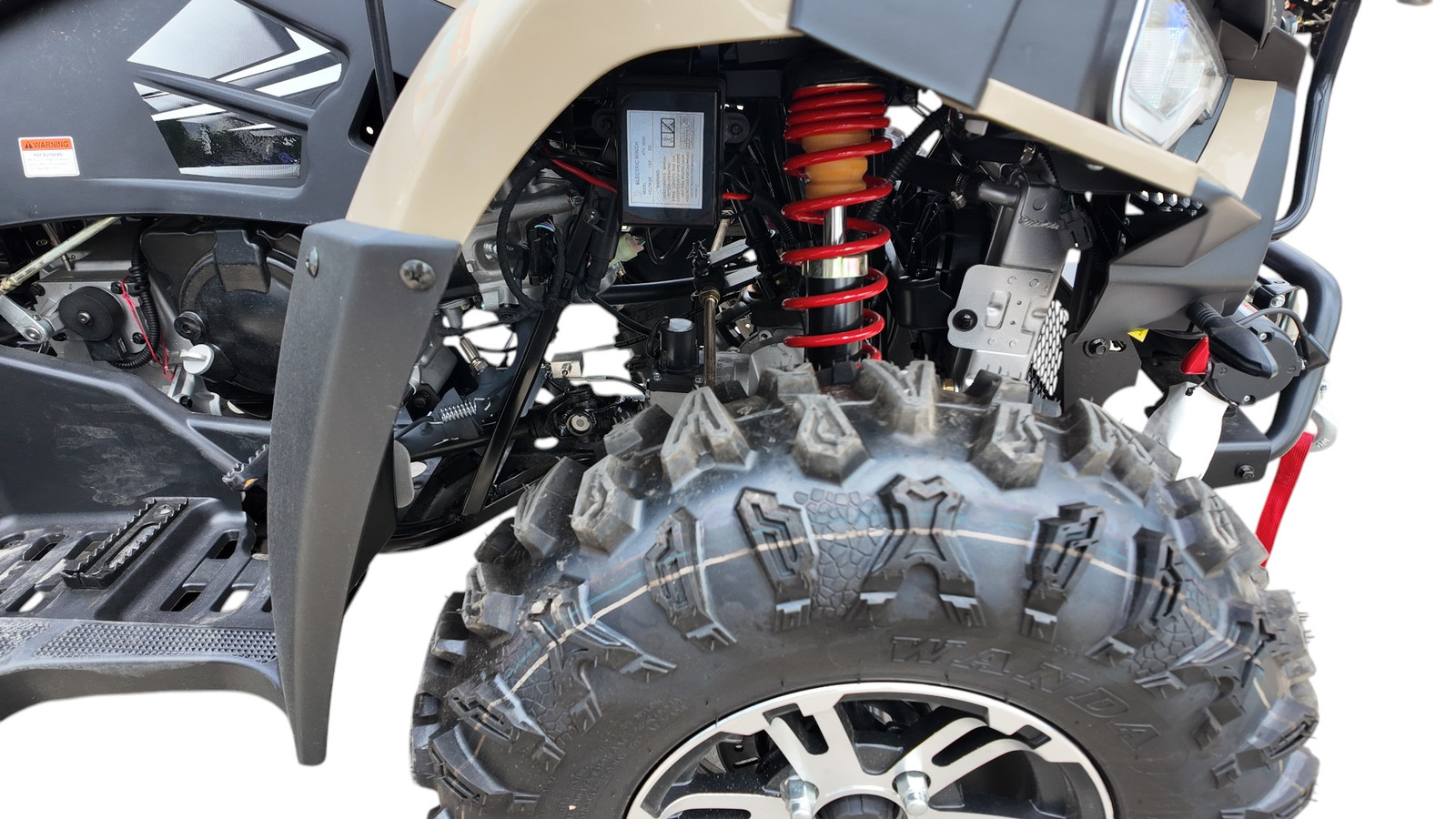 Благодаря независимой передней подвеске McPherson и независимой задней подвеске на А-образных рычагах, Linhai Promax 400 обеспечивает комфортную и стабильную поездку. Мощные гидравлические дисковые тормоза на всех колесах гарантируют эффективное и безопасное торможение, что позволяет контролировать ситуацию на любой скорости.