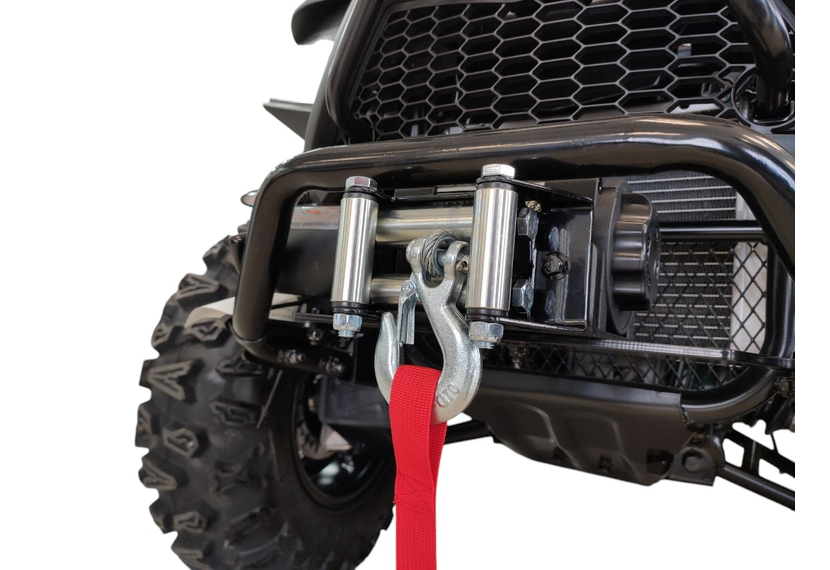Комплектация "Promax" делает этот квадроцикл универсальным инструментом. В стандартную комплектацию входят: мощная электрическая лебедка с тяговым усилием 3000 lbs, прочные передний и задний багажники, фаркоп и полноценный комплект светодиодной оптики для отличной видимости. Надежные стальные диски и защита для рук дополняют этот готовый к любым вызовам вездеход.