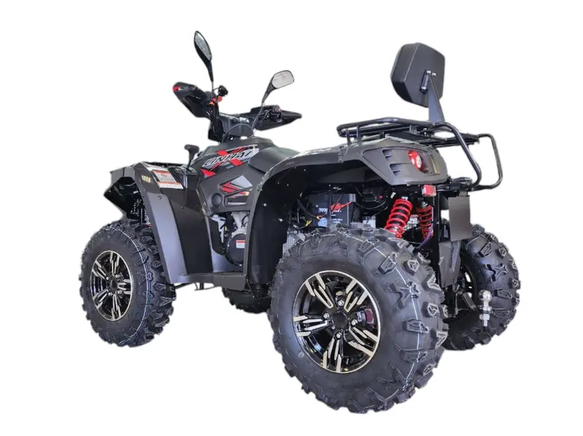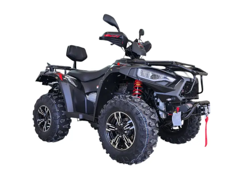 Благодаря независимой передней подвеске McPherson и независимой задней подвеске на А-образных рычагах, Linhai Promax 400 обеспечивает комфортную и стабильную поездку. Мощные гидравлические дисковые тормоза на всех колесах гарантируют эффективное и безопасное торможение, что позволяет контролировать ситуацию на любой скорости.