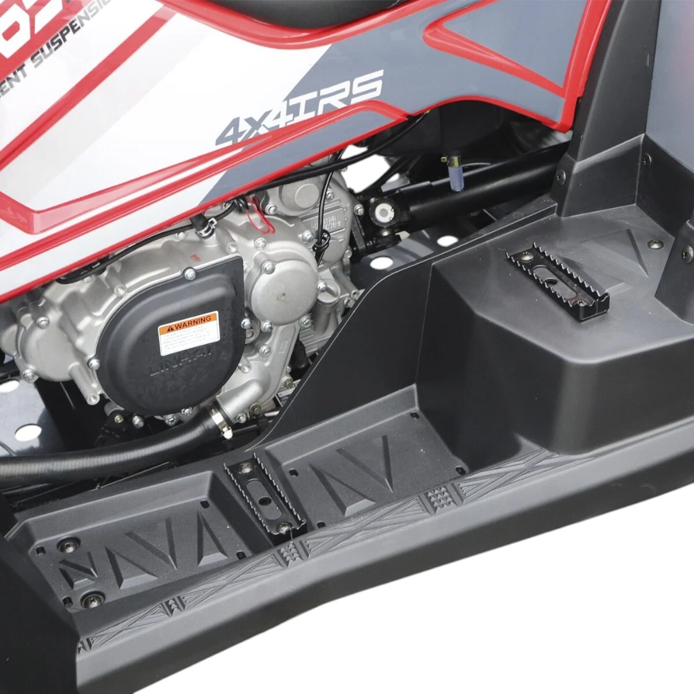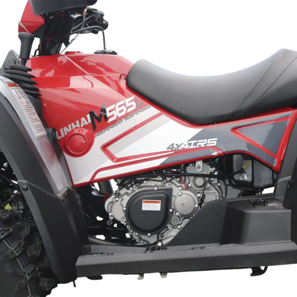 В основе Linhai M565Li лежит мощный и производительный одноцилиндровый 4-тактный двигатель объемом 500 куб.см и уменьшенным охлаждением. Система электронного впрыска топлива (EFI) обеспечивает легкий запуск, стабильную работу двигателя и оптимальный расход топлива, делая его экономичным и надежным. Автоматическая трансмиссия CVT делает управление автомобилем максимально простым, а усовершенствованная система полного привода 2×4/4×4 с блокировкой дифференциала позволяет уверенно регулировать любую избыточную поворачиваемость.