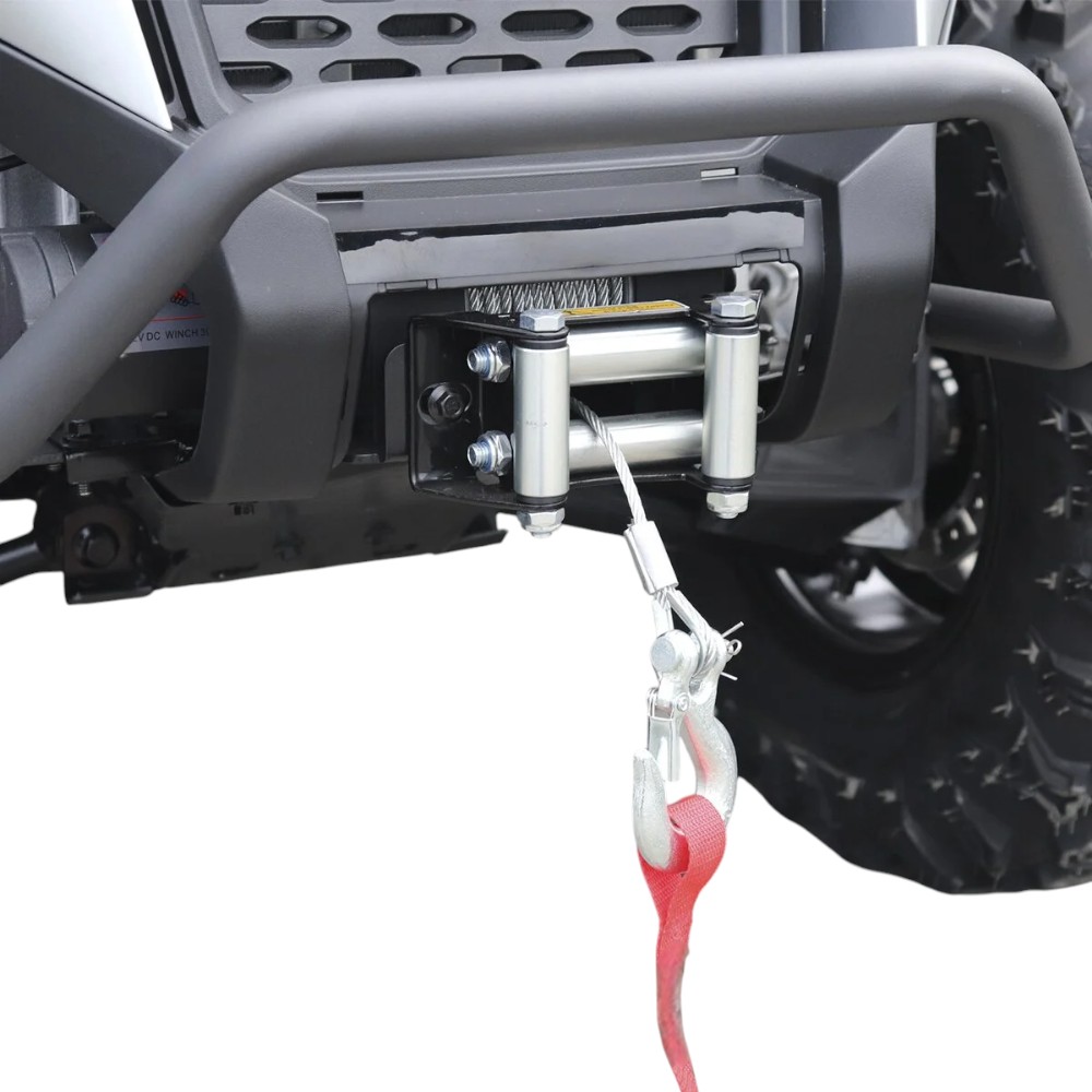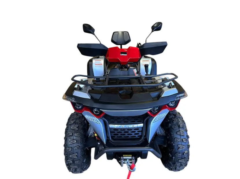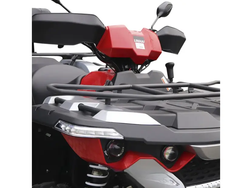 Дополнительное имущество Linhai M565Li EFI оснащен всем необходимым для работы. В стандартную комплектацию входят: сверхмощная электрическая лебедка, небольшие передний и задний багажники, тягово-сцепное устройство и полное текущее освещение. Эти детали делают квадроцикл прочным и универсальным спутником в любой ситуации.