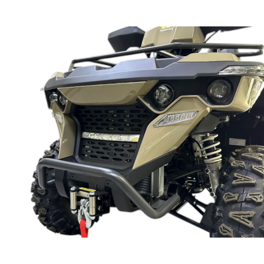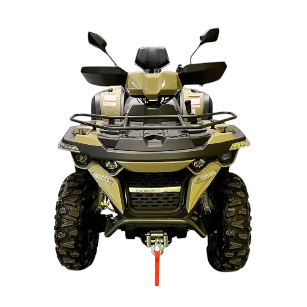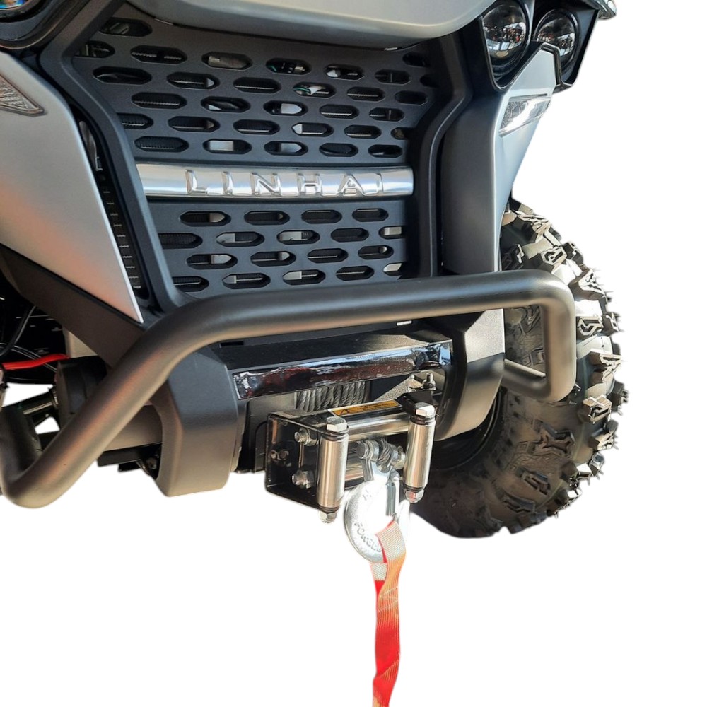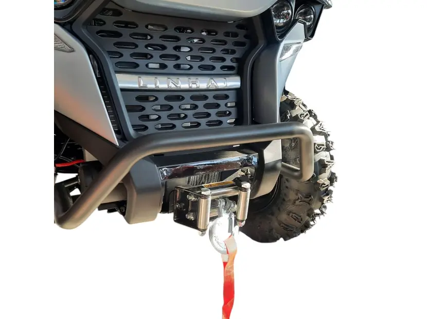 Linhai M565Li EFI оснащен всем необходимым для работы. В стандартную комплектацию входят: сверхмощная электрическая лебедка, небольшие передние и задние багажники, тягово-сцепное устройство и полное токовое освещение. Эти детали делают квадроцикл прочным и универсальным спутником в любой ситуации.