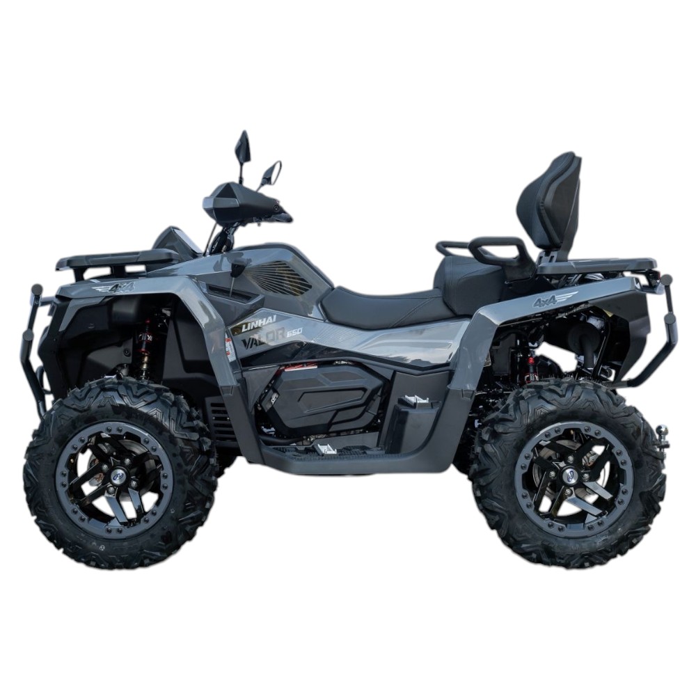 Этот квадроцикл оснащен всем необходимым для эффективного использования. В стандартную комплектацию входят сверхмощная электрическая лебедка, небольшие передний и задний багажники, буксировочное устройство и полная токовая система освещения. Все эти детали делают Linhai Valor 650 универсальным и прочным транспортным средством как для работы, так и для отдыха.