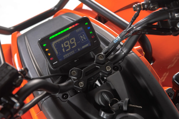 Продуманная эргономика и удобное сиденье обеспечивают комфортную посадку. Интуитивно понятное управление, удобное расположение рычагов и современная цифровая приборная панель с LCD-дисплеем делают эксплуатацию квадроцикла максимально простой и приятной. Камуфляжная расцветка помогает машине сливаться с окружающей средой.