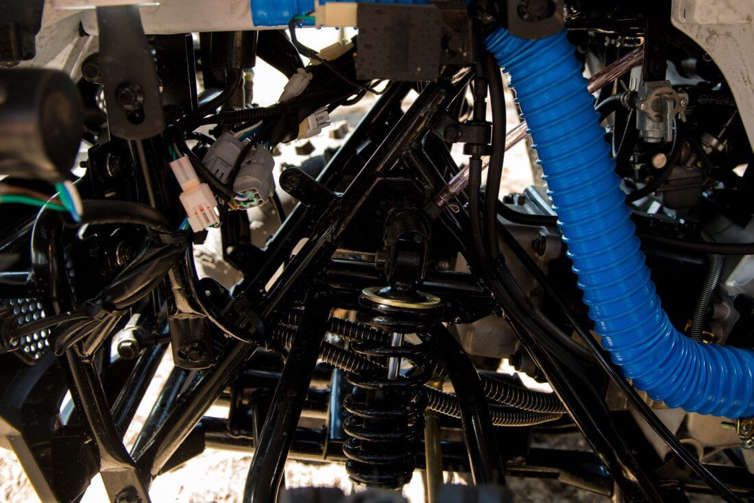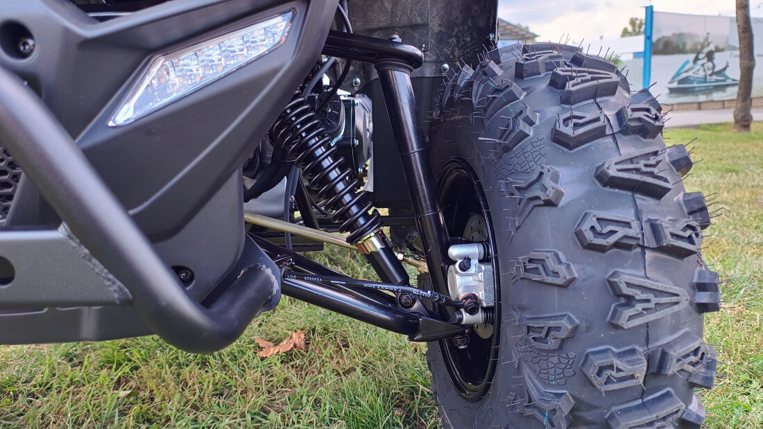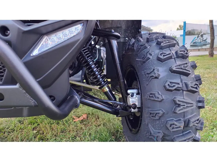 Благодаря независимой подвеске на двойных A-образных рычагах спереди и маятниковой с моноамортизатором сзади, Linhai Z210 эффективно поглощает неровности, обеспечивая комфортную поездку. Мощные дисковые гидравлические тормоза на всех колесах гарантируют надежное торможение и полный контроль над квадроциклом.