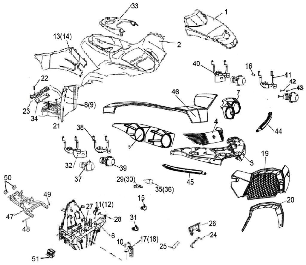 Передняя часть кузова и рама | Linhai_2_204_atv400-2d доставим по Украине в течении 2-3-х дней после подтверждения заказа менеджером. Заказ отправляется службами доставки в тот же день, если заказ сделан до 14:00 и товар готов к отправке. Доставка осуществляется курьером магазина или службой доставки "Нова Пошта" и "Meest-Express". Стоимость доставки нашей машиной по Украине 20 грн/км от магазина в обе стороны (100 км=2000 грн). В Киеве, Виннице доставка машиной магазина по цене 300 грн. Стоимость доставки "Нова Пошта" и "Meest-Express" по их тарифам. Так же на многих товарах есть Бесплатная доставка - ищите соответствующий стикер на товаре!
