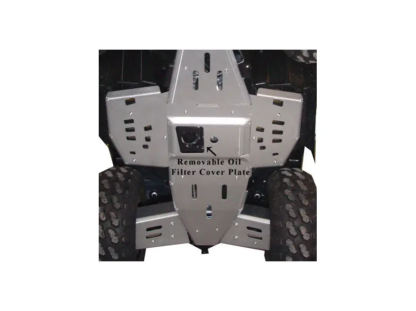 Комплект высокопрочных дюралевых крышек ходовой части съемной крышкой масляного фильтра от ведущего американского производителя Ricochet. Для оптимальной защиты важных частей машины от повреждений в результате ударов и попадания камней. Замените ваши серийные пластиковые кожухи на прочные и легкие алюминиевые. Включая защиту подножек и A-образных рычагов. Кожухи Ricochet являются самыми продаваемыми кожухами для коммерческих квадроциклов и Side-by-Side в мире