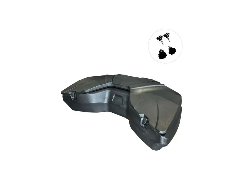Запираемый задний бокс для квадроциклов. Изготовлен из высококачественного ударопрочного полиэтилена. В этом боксе поместится все, что вам нужно для путешествий, работы, рыбалки или охоты. Внутренний объем 120 литров. Крышка запирается на две металлические застежки