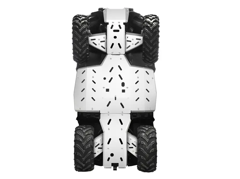 Алюминиевые крышки ходовой части Shark из прочного и легкого 4-миллиметрового алюминия авиационного качества — лучший способ защитить нижнюю часть вашего квадроцикла, A-образные рычаги и моторный отсек от повреждений камнями, скалами и другими природными врагами. Встроенные крышки подножек. Изготовлены из чрезвычайно прочного алюминиевого сплава авиационного качества. Включая монтажные отверстия для легкого обслуживания квадроцикла без необходимости демонтажа крышки.