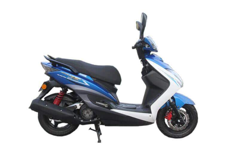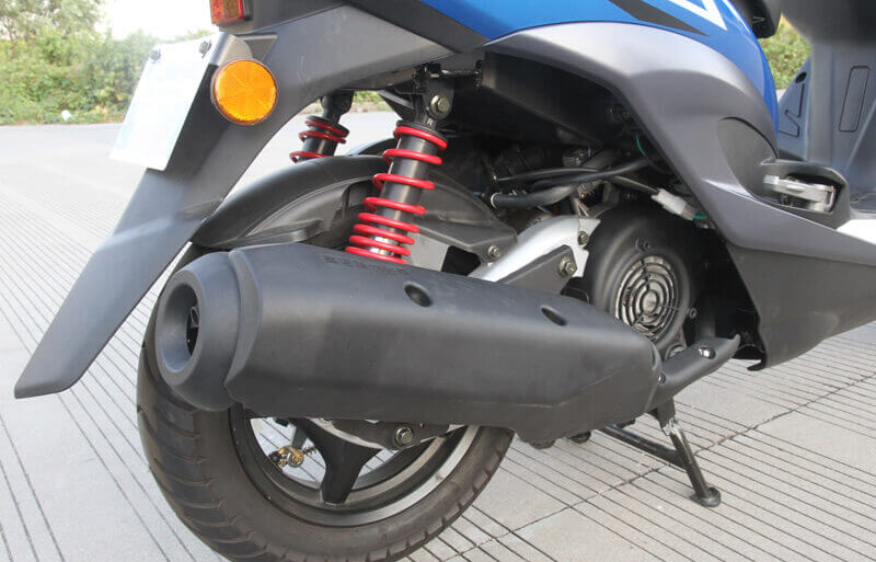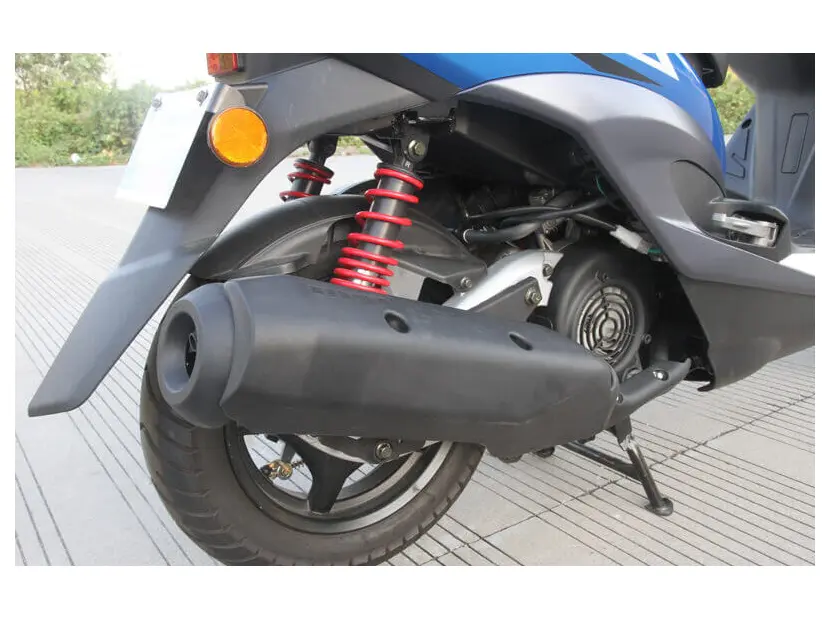 Скутер оснащен передней телескопической вилкой и задним моноамортизатором, что обеспечивает комфортную поездку по неровностям. Тормозная система сочетает в себе дисковый тормоз на переднем колесе и надежный барабанный тормоз на заднем, что гарантирует эффективное и безопасное торможение в любой ситуации.