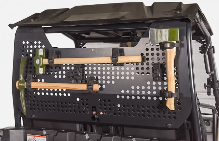 Задня панель ідеально підходить для кріплення інструментів, аксесуарів або тримачів. Вона пропонує практичний простір для всього, що потрібно мати під рукою під час роботи.