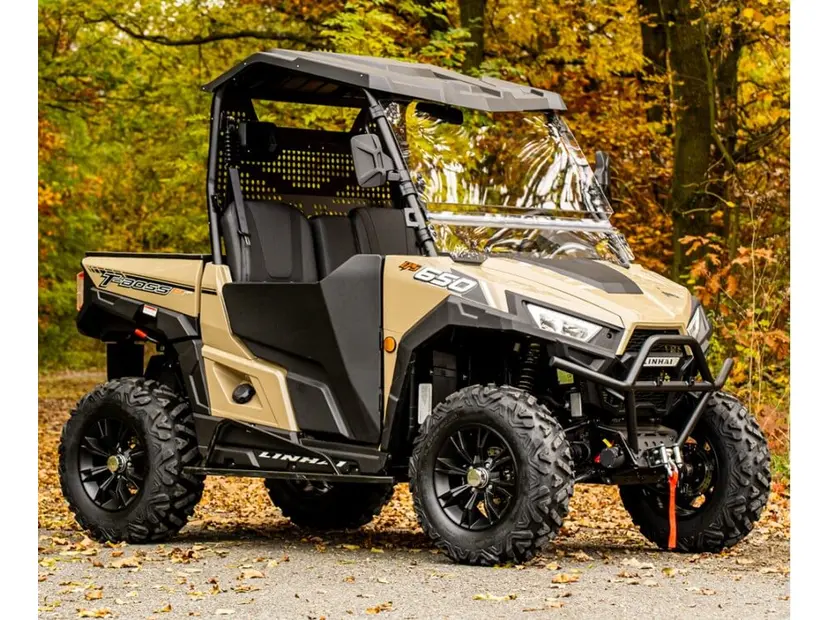 Представляємо вам надійний та потужний UTV Linhai T-Boss 650 EPS — ідеальний інструмент для найскладніших робіт та захопливих пригод. Ця модель поєднує в собі видатну продуктивність, високий рівень комфорту та керованості, а наявність електропідсилювача керма робить кожну поїздку легкою та приємною.