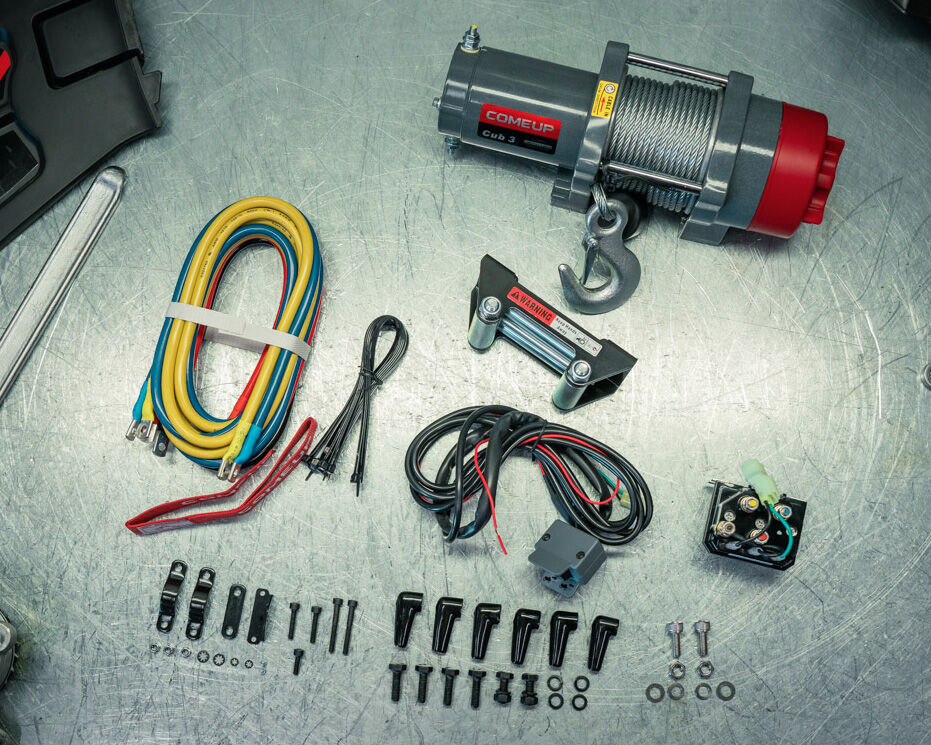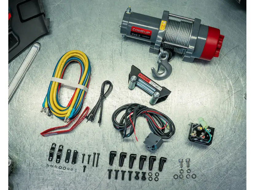 Електричний лебідка для квадроциклів ComeUP Cub 3. Просте управління на кермі полегшує маніпуляції з предметами, завдяки герметичній конструкції лебідки її можна використовувати навіть в погіршених кліматичних умовах. Для безпечної роботи модель Cub 3 оснащена механічним і динамічним гальмом з 100% гальмівною силою. У комплекті поставляється лебідка, сталевий трос з гаком, перемикач на кермо, направляюча троса, провідники та 6 кабелів до акумулятора. Лебідка для квадроциклів ComeUP Cub 3 сертифікована в ЄС.