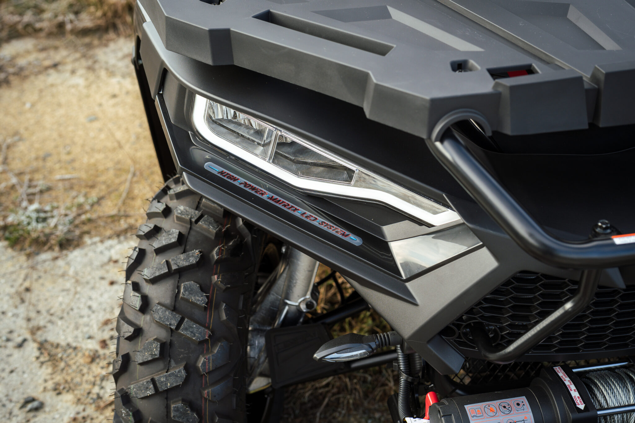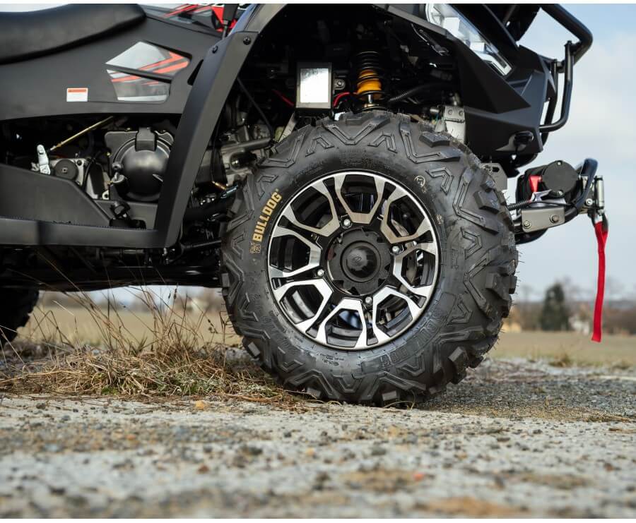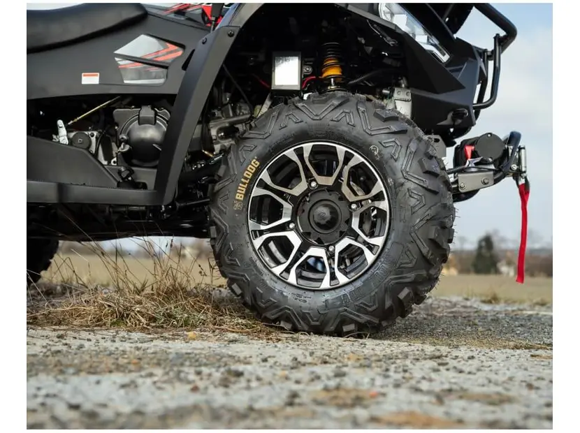Високоякісні позашляхові шини Bulldog з універсальним малюнком забезпечують надійне зчеплення, стійкість та впевненість у широкому діапазоні місцевості. Дизайнерські алюмінієві диски підкреслюють сучасний вигляд цього квадроцикла.