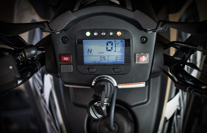 Сидіння з анатомічною формою підтримує правильну посадку, що зменшує втому під час тривалих поїздок. Широкі підніжки з протиковзким покриттям гарантують надійне положення ніг навіть у бруд чи дощ. Інтуїтивно зрозуміле керування, зручні важелі та сучасна панель приладів з LCD-дисплеєм роблять поїздку максимально комфортною та інформативною.