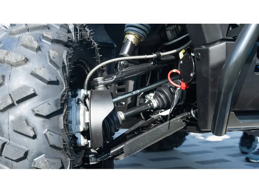 Технологія, що дає свободу: Відчуйте повний контроль завдяки інноваційному електропідсилювачу керма (EPS). Забудьте про напругу та втому! Керування стає настільки легким, що ви відчуєте себе єдиним цілим з квадроциклом, легко маневруючи між деревами, камінням або глибокими коліями. Довга колісна база та продумана підвіска роблять їзду неймовірно плавною, перетворюючи кожну нерівність на м'яке погойдування.