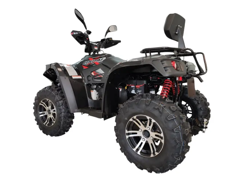Завдяки незалежній передній підвісці McPherson та незалежній задній підвісці на А-подібних важелях, Linhai Promax 400 забезпечує комфортну та стабільну поїздку. Потужні гідравлічні дискові гальма на всіх колесах гарантують ефективне та безпечне гальмування, що дозволяє контролювати ситуацію на будь-якій швидкості.