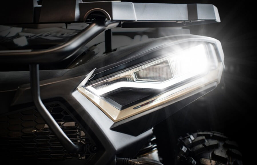 Комплектація «Promax» — це повний пакет для найвимогливіших користувачів. Вже у стандартній версії квадроцикл оснащений потужною електричною лебідкою, міцними переднім та заднім багажниками, фаркопом і повноцінним комплектом світлодіодної оптики для чудової видимості. Надійні сталеві або легкосплавні диски, захист для рук та дзеркала заднього виду доповнюють цей функціональний всюдихід.