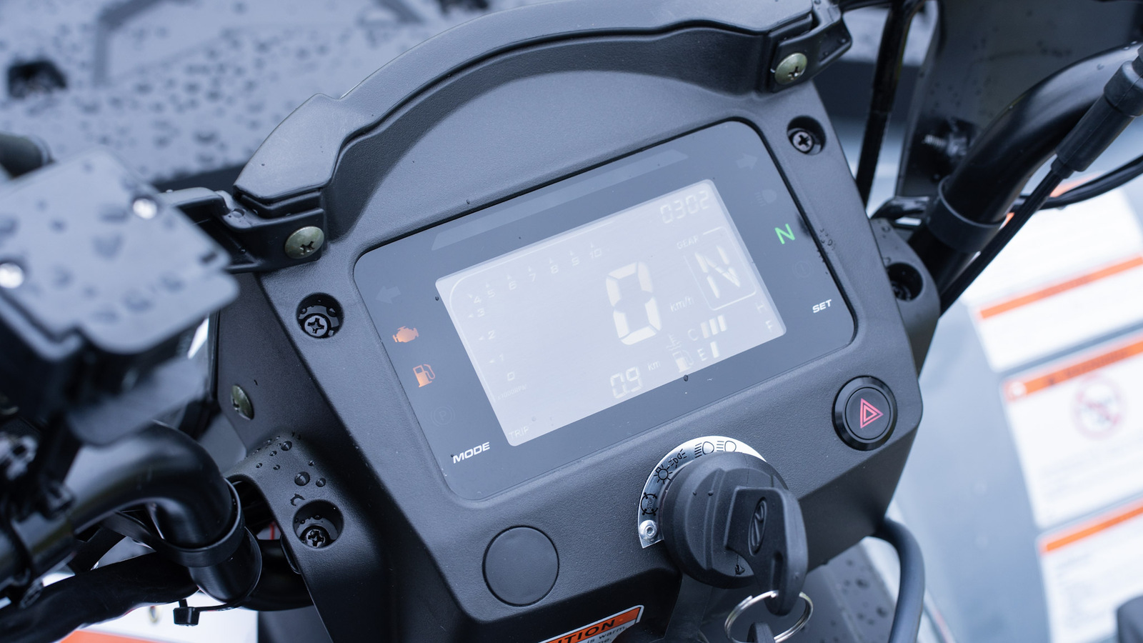 Багатофункціональний РК-дисплей із синім підсвічуванням надає всю важливу інформацію про поточну швидкість, оберти двигуна, пробіг, увімкнену передачу та режим руху, температуру охолоджувальної рідини або рівень палива.