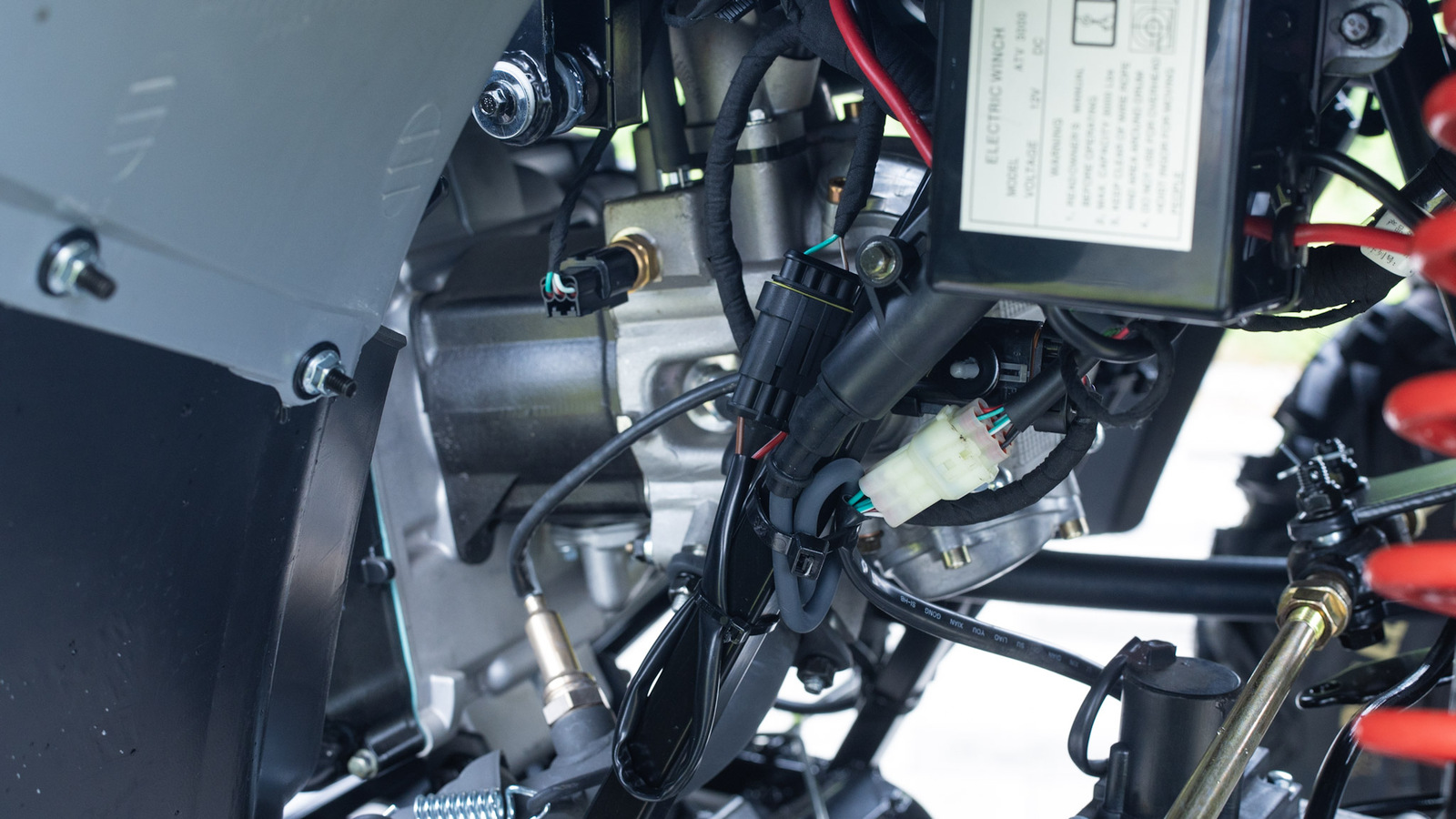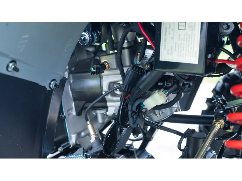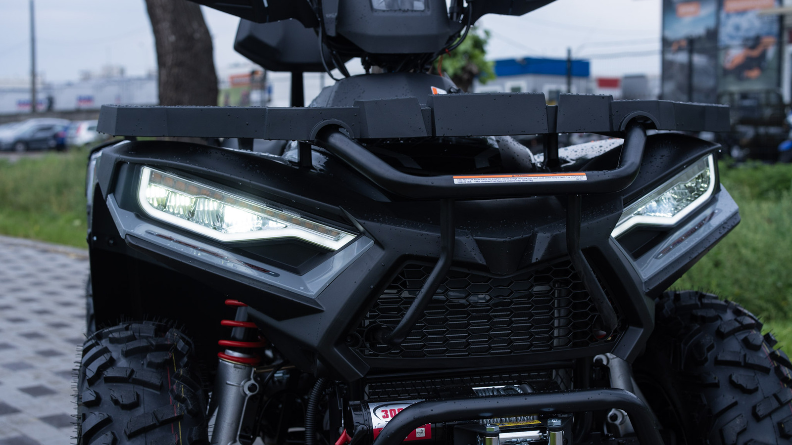 Потужна лебідка з тяговим зусиллям 3000 фунтів може впоратися як із застряглими машинами, так і з важкими вантажами. Завдяки дистанційному керуванню ви можете активувати її безпосередньо з сідла або з безпечної відстані — залежно від ситуації.