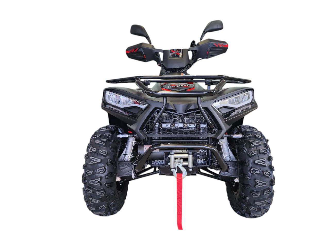 Комплектація "Promax" робить цей квадроцикл універсальним інструментом. У стандартну комплектацію входять: потужна електрична лебідка з тяговим зусиллям 3000 lbs, міцні передній та задній багажники, фаркоп та повноцінний комплект світлодіодної оптики для відмінної видимості. Надійні сталеві диски та захист для рук доповнюють цей готовий до будь-яких викликів всюдихід.