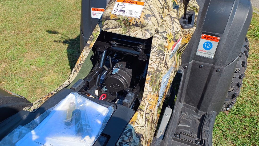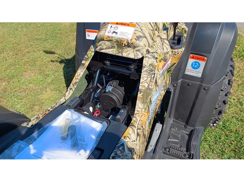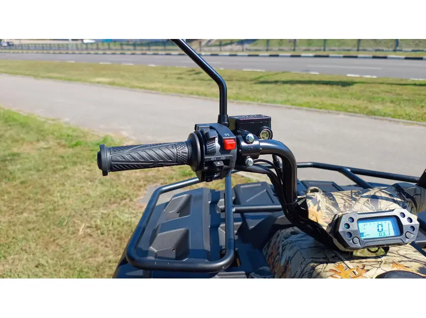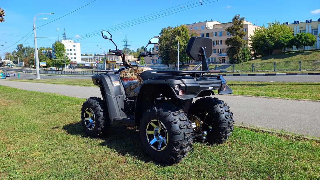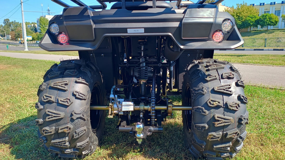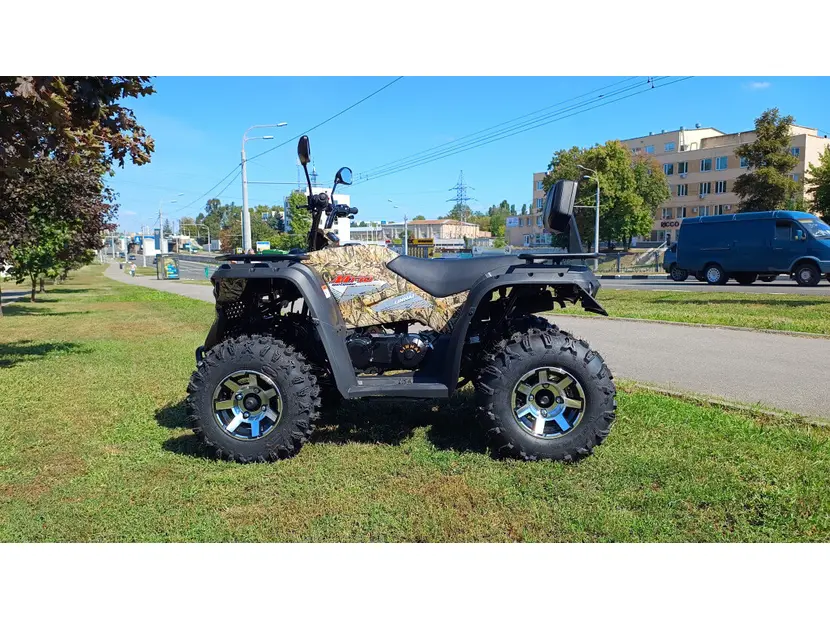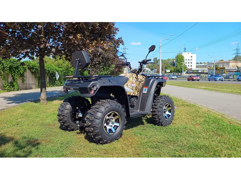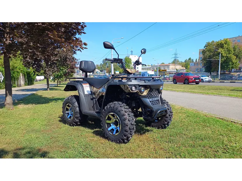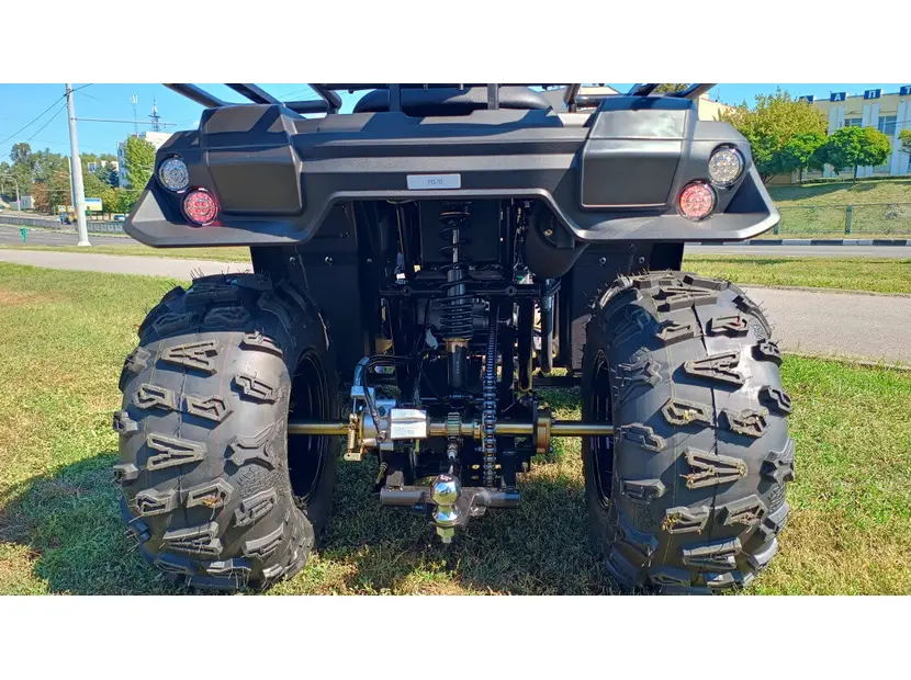 Цей квадроцикл оснащений усім необхідним для безпечних та практичних поїздок. У стандартну комплектацію входять: передній та задній багажники, які дозволяють перевозити невеликі вантажі. Надійна світлодіодна оптика забезпечує чудову видимість у темний час доби. Захисні бампери та широкі підніжки доповнюють функціональність і безпеку.