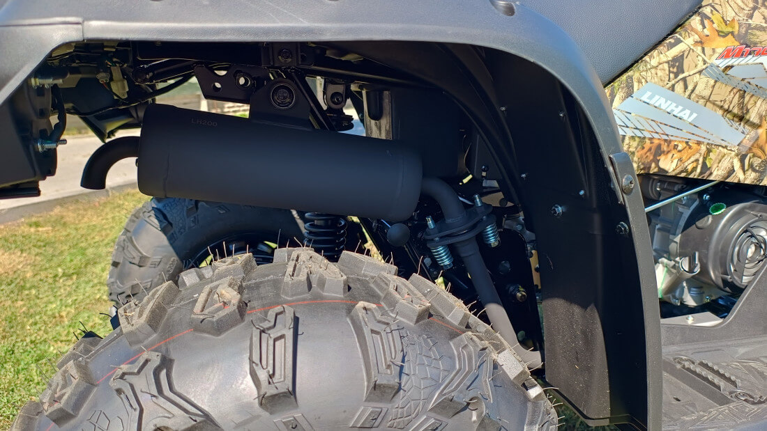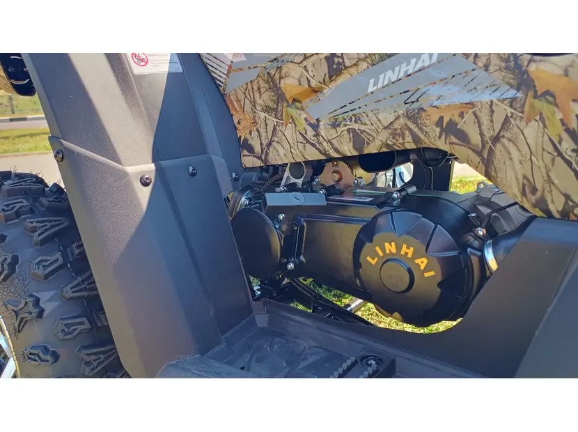 Серцем Linhai M170 Eyas є витривалий одноциліндровий 4-тактний двигун об'ємом 147.5 см³ з надійним повітряним охолодженням. Цей двигун забезпечує достатню потужність для веселих поїздок і водночас легко контролюється. Наявність автоматичної трансмісії CVT робить керування максимально простим — не потрібно думати про перемикання передач. Привід 2×4 на задню вісь гарантує відмінну динаміку.