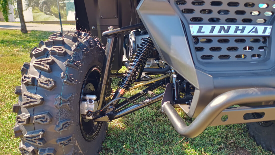 Завдяки незалежній передній підвісці на подвійних A-подібних важелях та задній маятниковій підвісці з моноамортизатором, Linhai M170 Eyas забезпечує плавну поїздку та відмінну стійкість. Потужні дискові гідравлічні гальма на обох осях гарантують надійне гальмування та повний контроль над машиною.