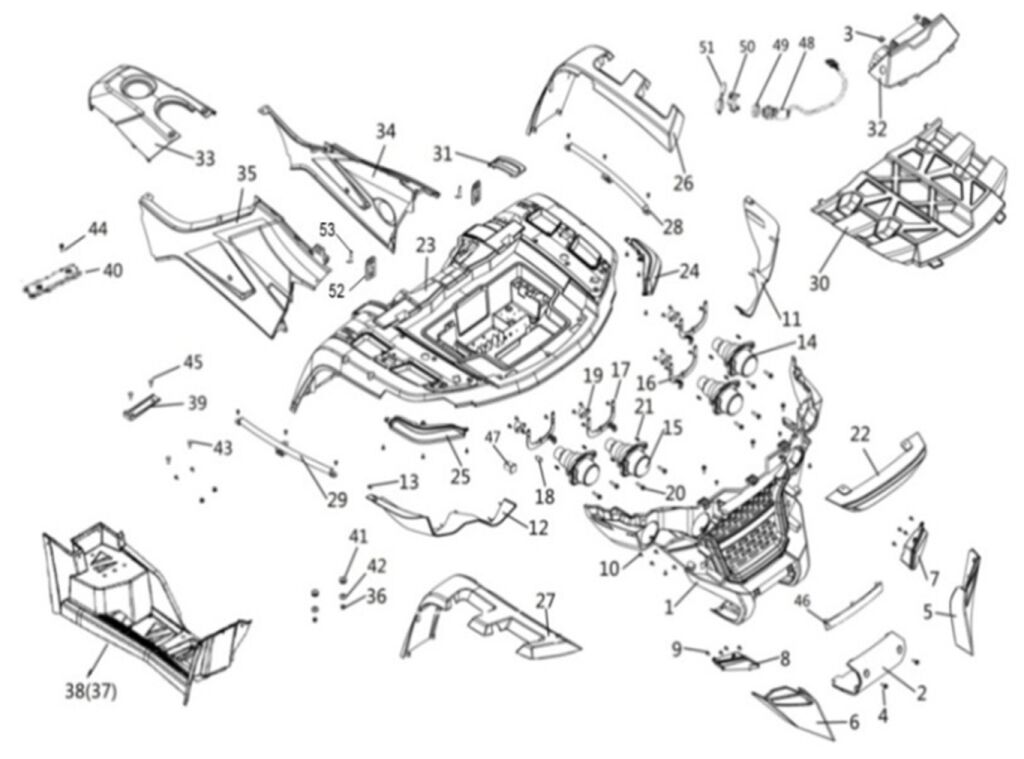 Передня частина кузова і рама | Linhai_4_404_m550l_e4 доставимо по Україні протягом 2-3 днів після підтвердження замовлення менеджером. Замовлення відправляється службами доставки в той же день, якщо замовлення зроблено до 14:00 і готовий до відправки. Доставка здійснюється кур'єром магазину або службою доставки "Нова Пошта" та "Meest-Express". Вартість доставки нашою машиною по Україні 20 грн/км від магазину в обидва боки (100 км = 2000 грн). У Києві, Вінниці доставка машиною магазину за ціною 300 грн. Вартість доставки "Нова Пошта" та "Meest-Express" за їх тарифами. Також на багатьох товарах є Безкоштовна доставка – шукайте відповідний стікер на товарі!