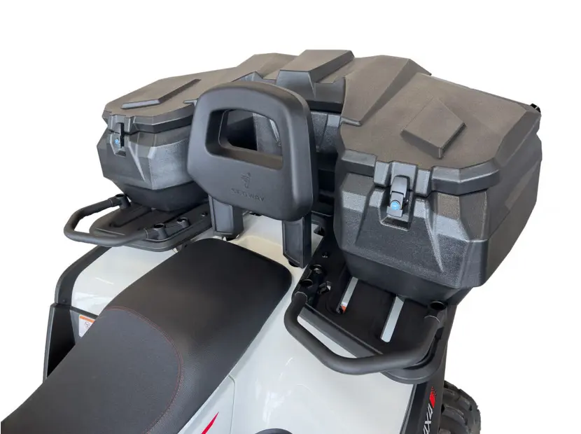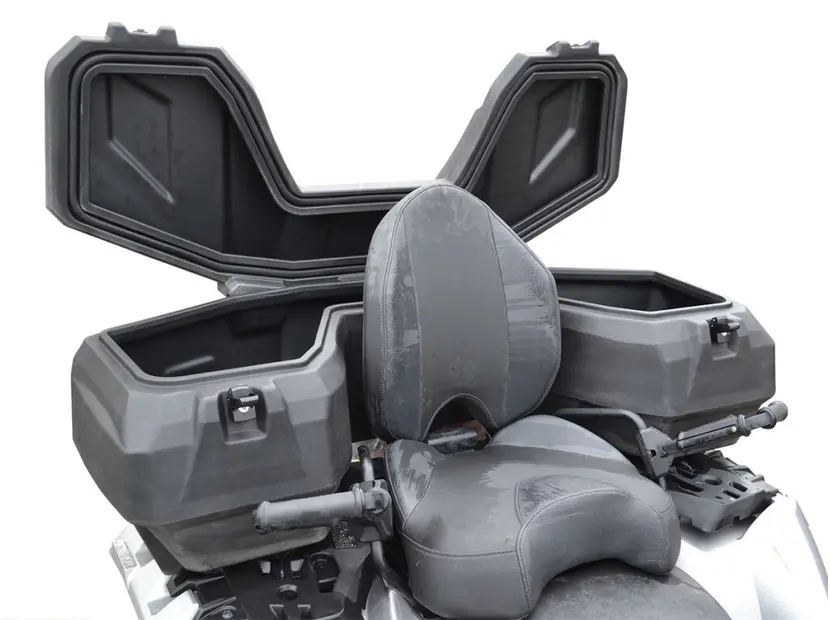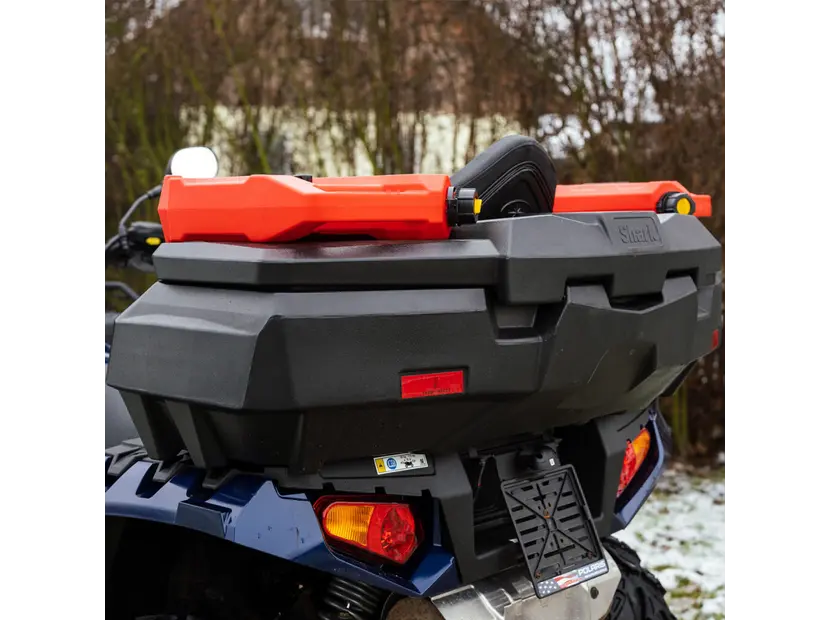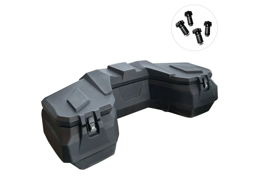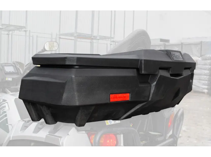 Замикаючий задній бокс для утилітарних квадроциклів. Виготовлений з високоякісного ударостійкого поліетилену. Цей бокс вміщує все, що вам потрібно для подорожей, роботи, риболовлі або полювання. Внутрішній об'єм 112 літрів. Кришка замикається на дві металеві застібки, каністру необхідно придбати окремо