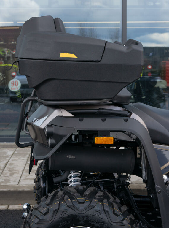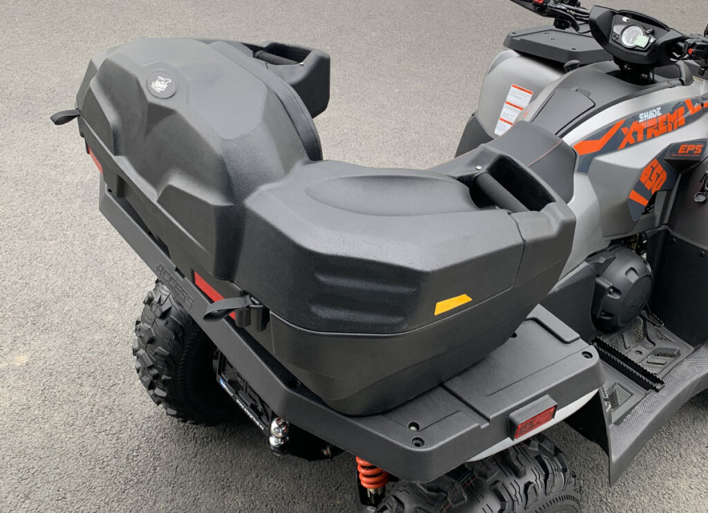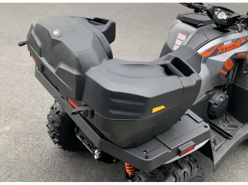 Розкішний великоємний замикаючийся задній бокс для утилітарних квадроциклів з сидінням для пасажира. З високоякісного ударостійкого поліетилену, Ця коробка вмістить все, що вам потрібно для подорожей удвох, роботи, риболовлі або полювання. Величезний внутрішній простір об'ємом 75 літрів. Кришка закривається двома замикаючимися засувками. М'яке оббивка сидіння, ручки для рук і спинка забезпечують пасажиру максимальний комфорт під час поїздки.