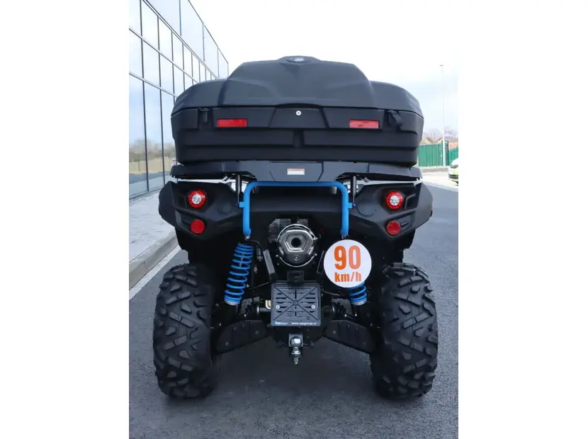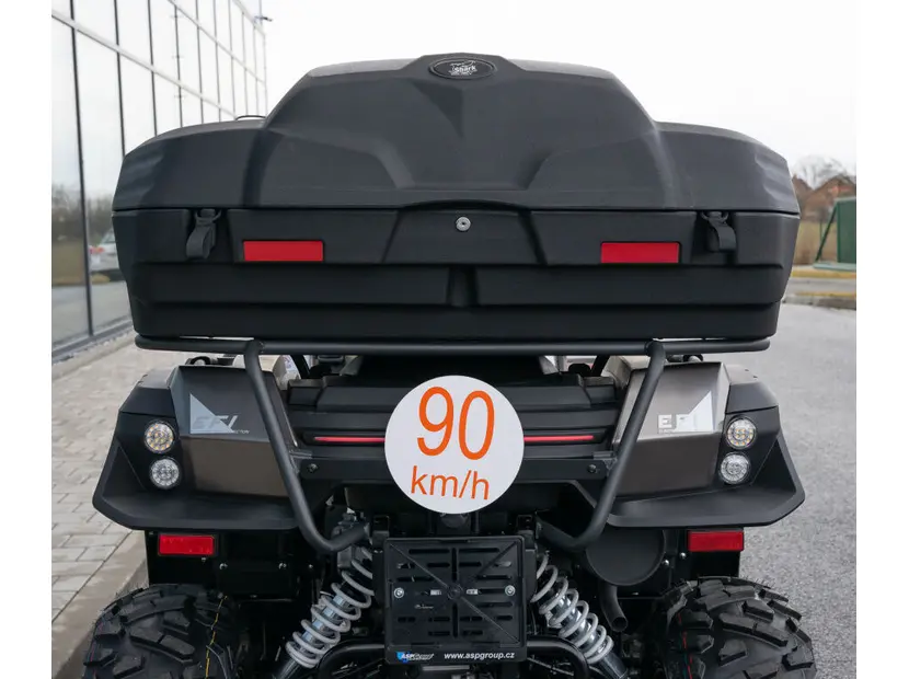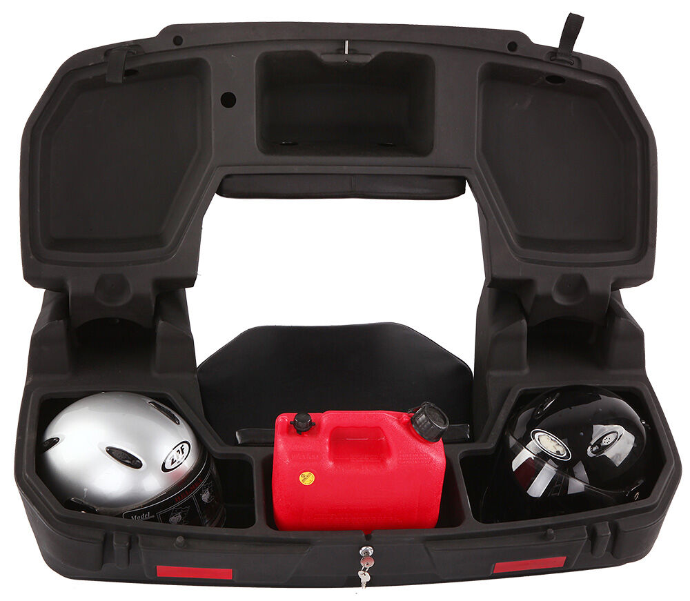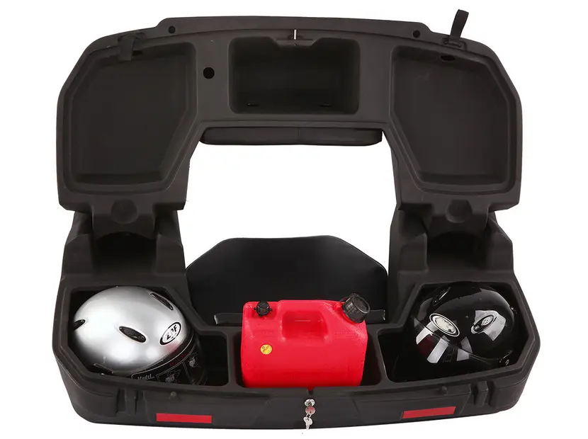 Розкішний великоємний замикаючийся задній бокс для квадроциклів з сидінням для пасажира. Цей бокс вмістить все, що вам потрібно для подорожей удвох, роботи, риболовлі або полювання. Великий внутрішній простір об'ємом 75 літрів. М'яке оббите сидіння, зручна спинка та анатомічні підлокітники забезпечують пасажиру максимальний комфорт під час їзди. Коробка закривається на два замки та замикається на центральний замок. Виготовлена з високоякісного ударостійкого поліетилену. Замінює модель L7500