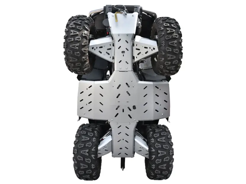Алюмінієві кришки шасі Shark з міцного та легкого 4-міліметрового алюмінію авіаційної якості — це найкращий спосіб захистити нижню частину вашого квадроцикла, A-подібні важелі та корпус двигуна від пошкоджень камінням, скелями та іншими природними ворогами. Вбудовані кришки підніжок. Виготовлені з надзвичайно міцного алюмінієвого сплаву авіаційної якості. Включають монтажні отвори для легкого обслуговування квадроцикла без необхідності демонтажу кришки.