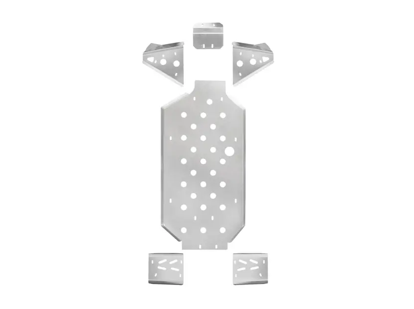 Алюмінієві кришки шасі Shark з міцного та легкого 4-міліметрового алюмінію авіаційної якості — це найкращий спосіб захистити нижню частину вашого квадроцикла, A-подібні важелі та корпус двигуна від пошкодження камінням, скелями та іншими природними ворогами. Виготовлені з надзвичайно міцного алюмінієвого сплаву авіаційної якості. Включають монтажні отвори для легкого обслуговування машини без необхідності демонтажу кришок.