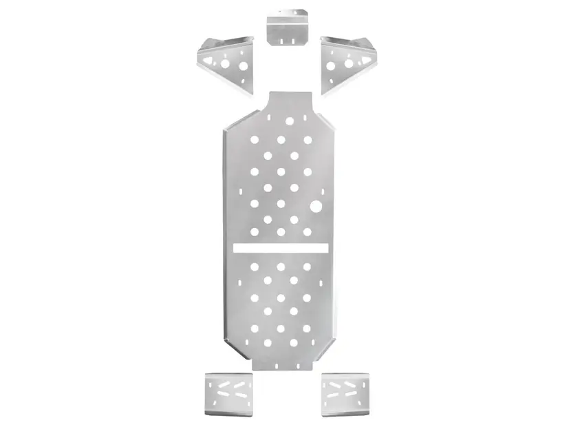 Алюмінієві кришки шасі Shark з міцного та легкого 4-міліметрового алюмінію авіаційної якості — це найкращий спосіб захистити нижню частину вашого квадроцикла, A-подібні важелі та корпус двигуна від пошкоджень камінням, скелями та іншими природними ворогами. Виготовлені з надзвичайно міцного алюмінієвого сплаву авіаційної якості. Включають монтажні отвори для легкого обслуговування машини без необхідності демонтажу кожухів.