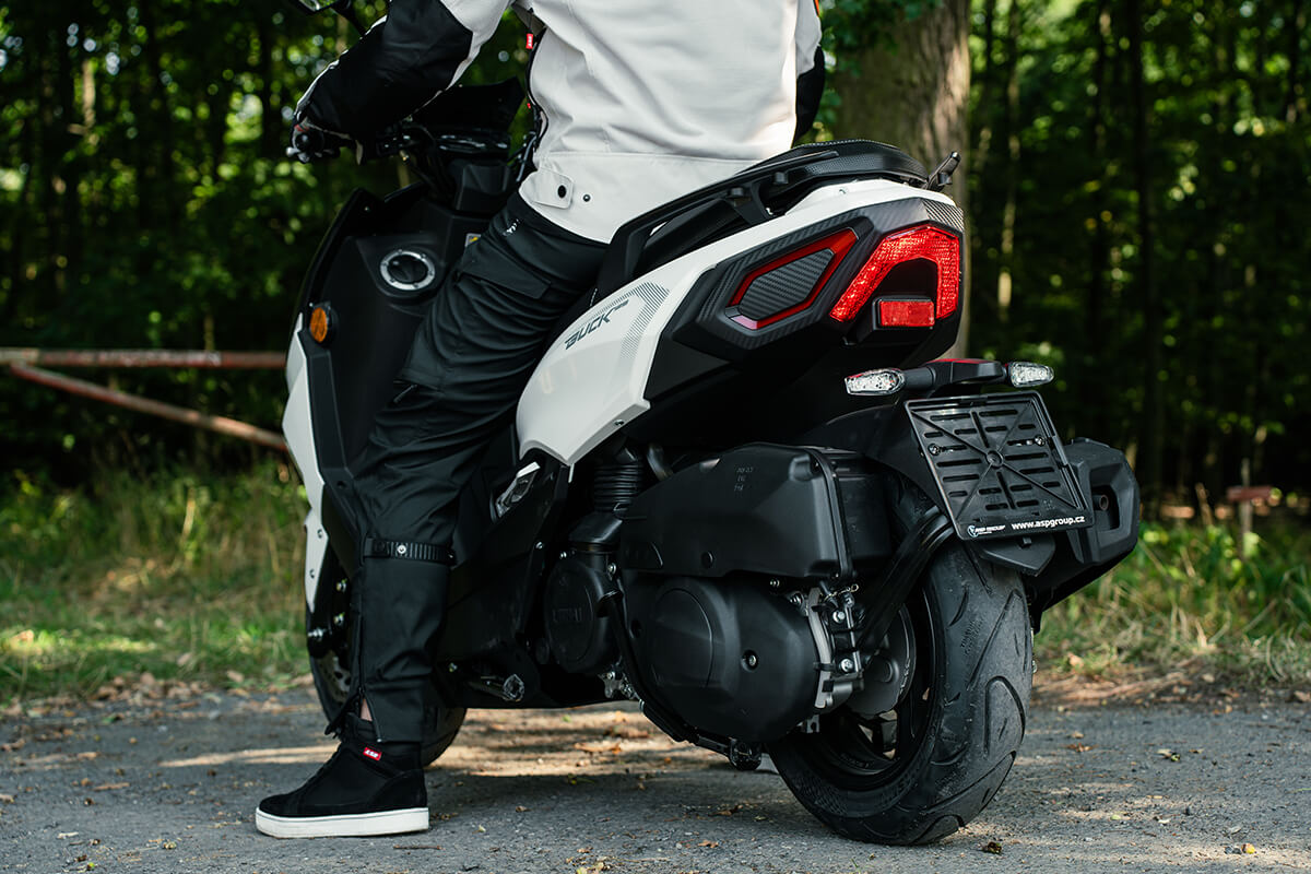 Скутер оснащений посиленою підвіскою, що дозволяє поглинати удари від нерівностей. Передня підвіска — це телескопічна вилка, а задня — маятниковий важіль у блоці з двигуном. Для безпеки Linhai Buck 125 обладнаний гідравлічними дисковими гальмами на обох колесах із системою ABS та системою контролю тяги (TCS), що гарантує надійне гальмування та стабільність на будь-якій поверхні.