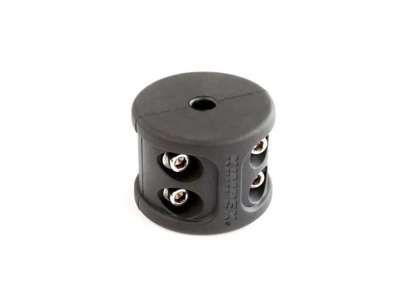 Улучшенная запатентованная конструкция. Ограничитель можно установить за несколько секунд без использования инструментов. Не нужно снимать крюк с троса, достаточно продеть трос через отверстие в металлических ограничителях и резиновом амортизаторе, а затем сжать все три детали вместе