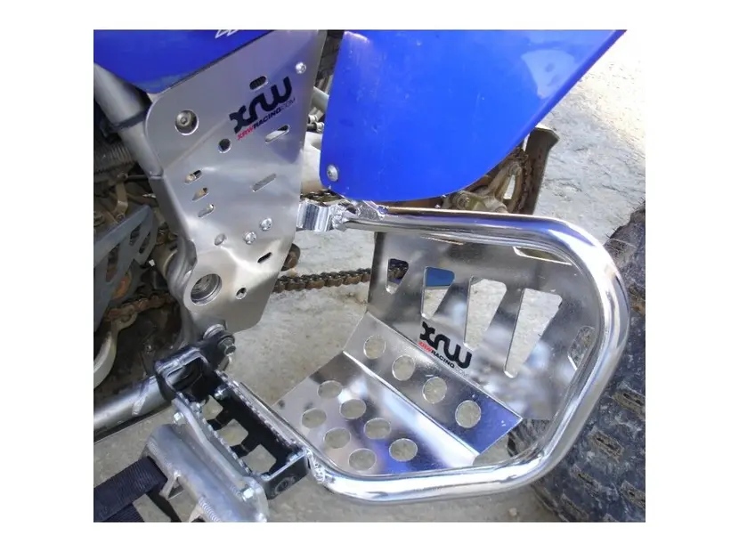 Практичная защита лакокрасочного покрытия рамы от царапин, которые оставляют ботинки в месте подножек. Алюминиевые защитные накладки на раму XRW изготовлены из закаленного алюминиевого сплава 5754-T5 и имеют анодированное покрытие из натурального алюминия.